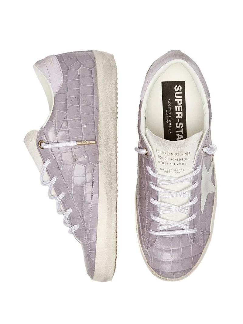 Sneakers Golden Goose Super-Star mov, cu efect embosat tip crocodil, inchidere cu siret, talpa din cauciuc si detaliu logo. 100% piele