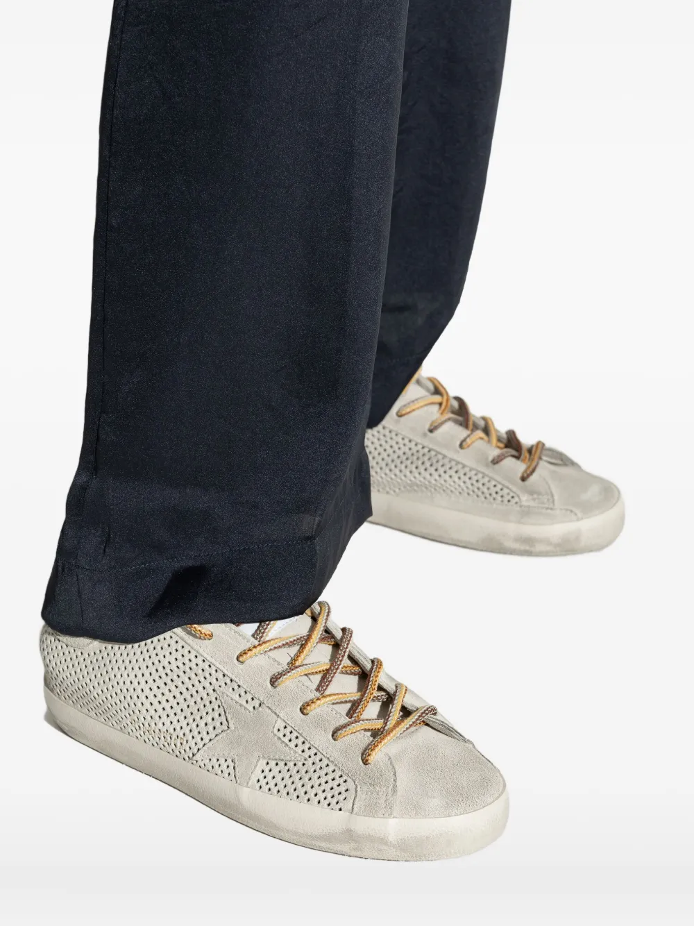 Sneakers Golden Goose Super-Star gri, sport, cu profil jos, inchidere cu sireturi, captuseala din piele, brant personalizat in contrast, talpa dreapta si bot rotund. 100% piele naturala.
