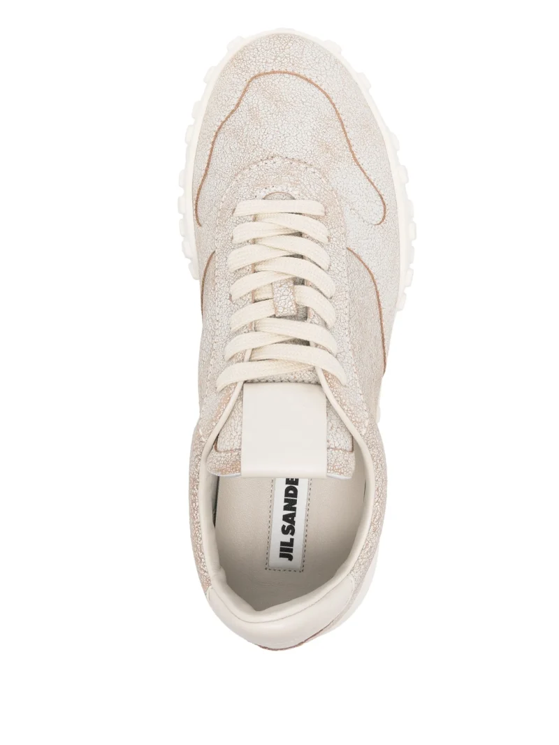 Sneakers Jil Sander Moon alb, cu inchidere frontala cu sireturi, varf almond si talpa din cauciuc. 100% piele