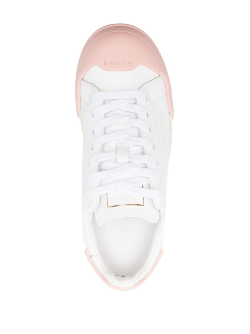 Pantofi albi din piele naturala, sport, cu profil jos, inchidere cu sireturi, logo Marni la spate, captuseala din piele, bot rotund cu logo gravat si talpa dreapta din cauciuc. 100% piele naturala; 100% piele naturala; 100% cauciuc.