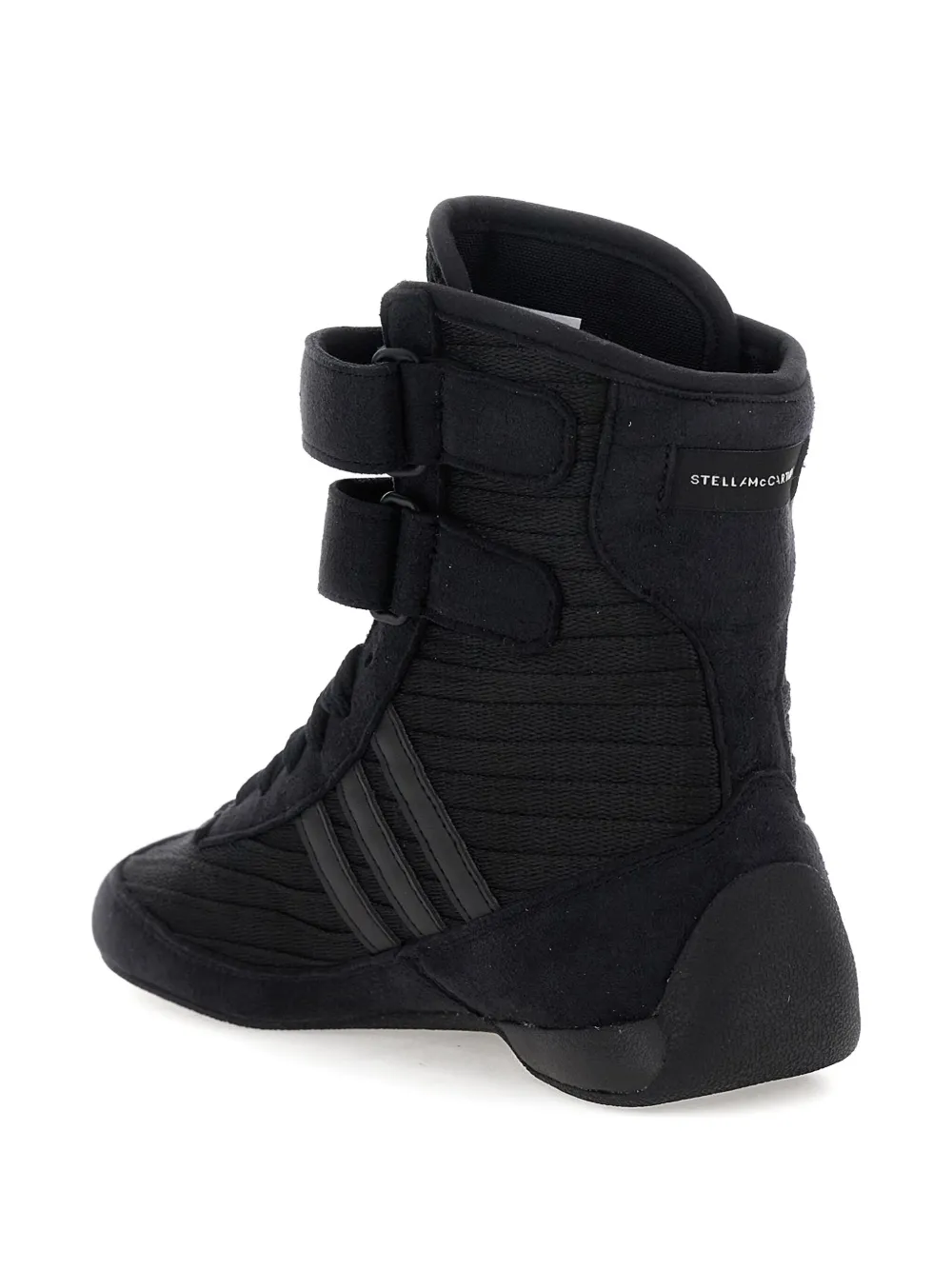 Sneakers Stella McCartney x Adidas Rasant negru, cu profil inalt, inchidere cu sireturi, barete cu velcro, logo „3-Stripes” pe laterale si talpa dreapta din cuciuc. 100% textil; 70% poliester; 15% bumbac; 15% poliuretan; 100% cauciuc.