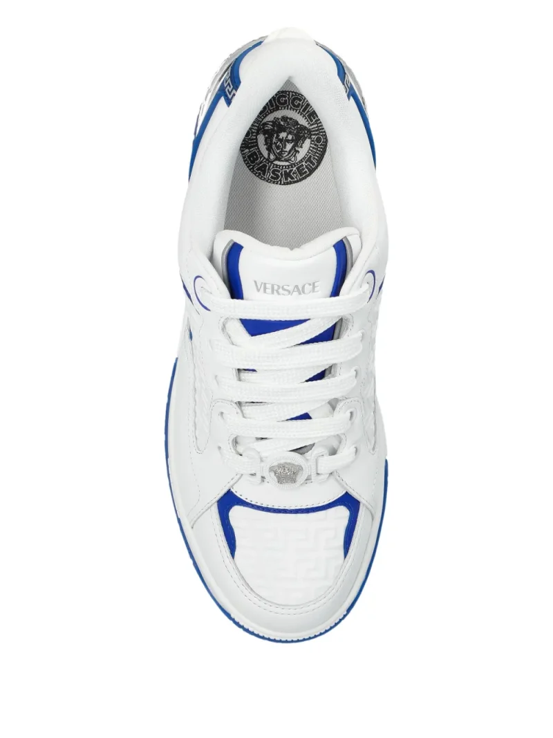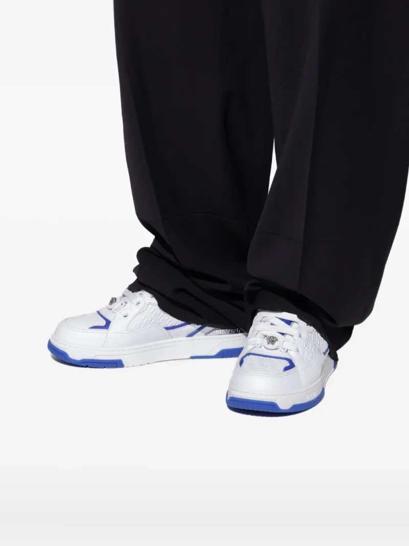 Sneakers Versace Greca pattern alb din piele naturala, detaliu model Greca, talpa cauciuc, inchidere cu sireturi.100% piele
