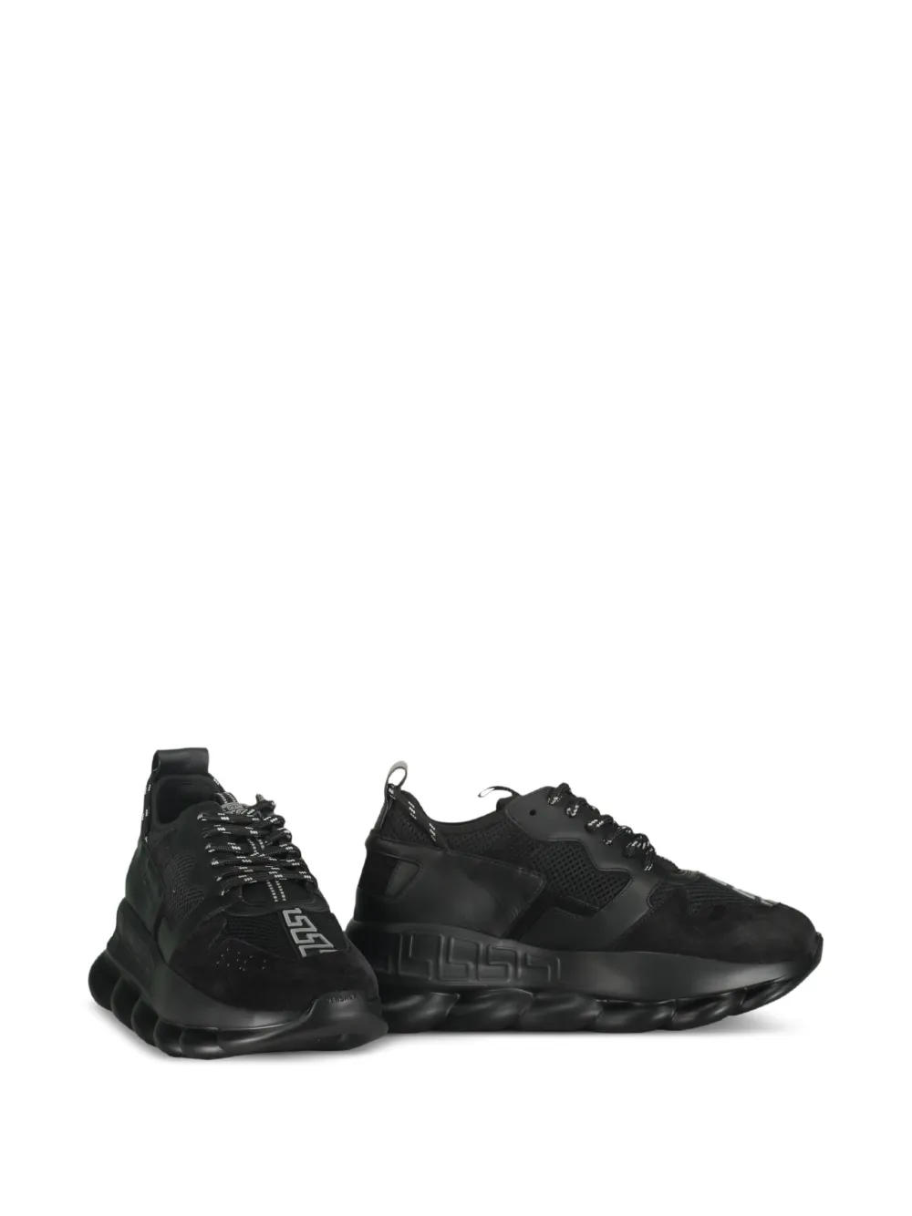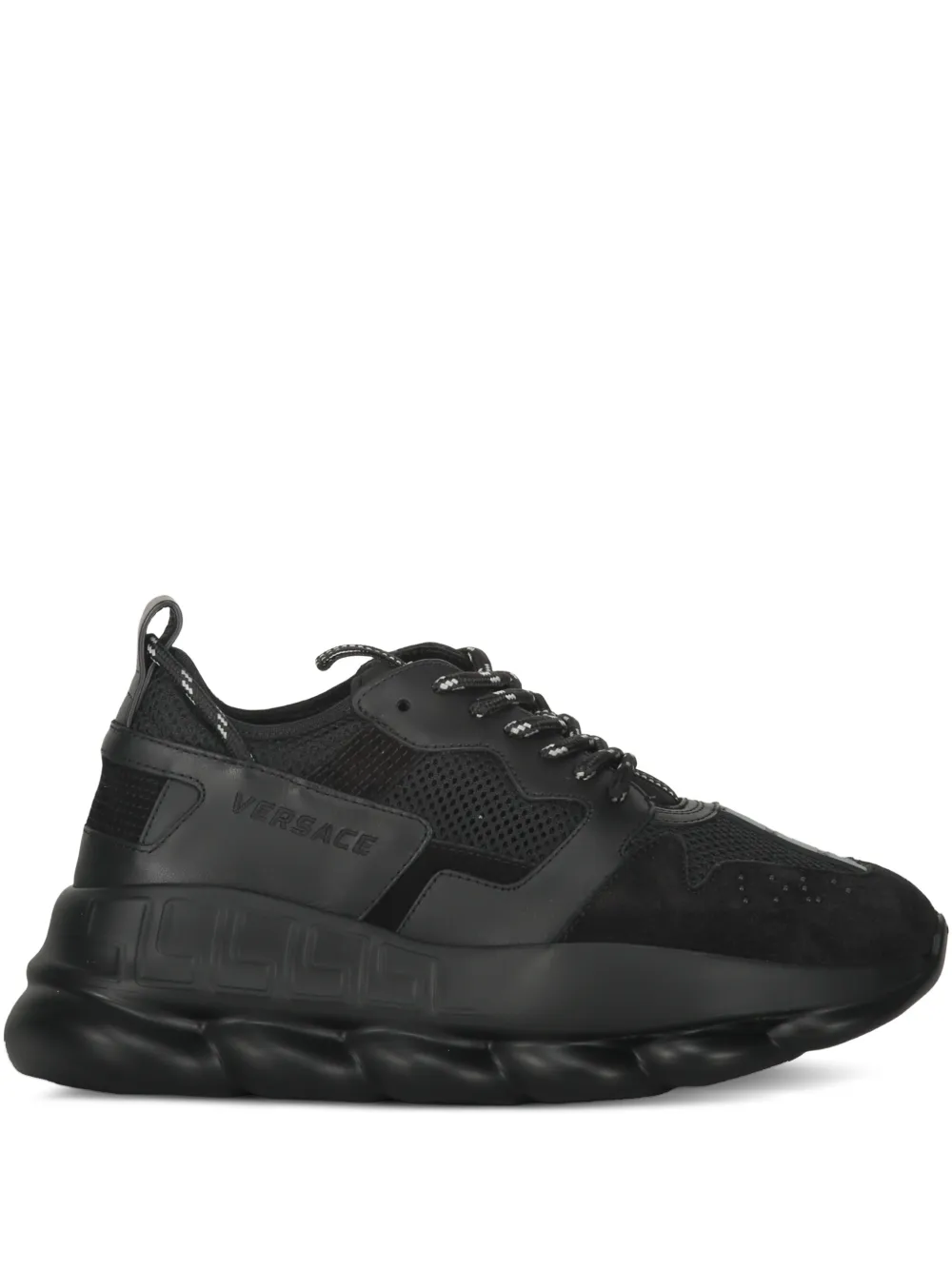 Sneakers Versace Logo-Detail negru, realizati din mix de materiale, sport, cu profil jos si inchidere cu sireturi, model Versace brodat pe laterale, si talpa suprainaltata din cauciuc cu model La Greca embosat. 100% piele de vitel; 100% poliester; 100% textil; 100% cauciuc.
