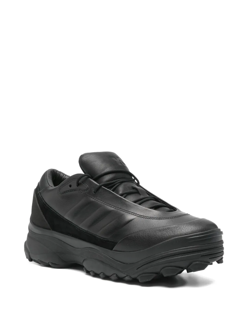 Sneakers Y-3 GSG9 Leather negru, sport, cu inchidere sireturi, logo Y-3 imprimat pe limba si la spate, design din panouri, talpa interioara din piele, bot rotund si talpa din cauciuc. 100% piele; 100% cauciuc; 100% piele.