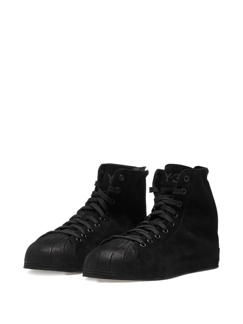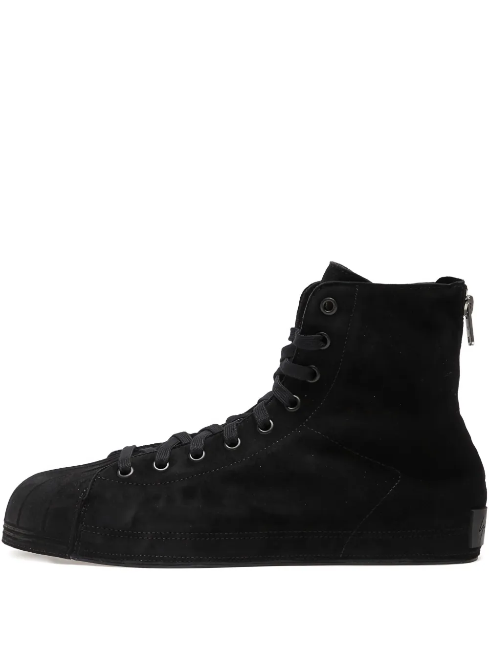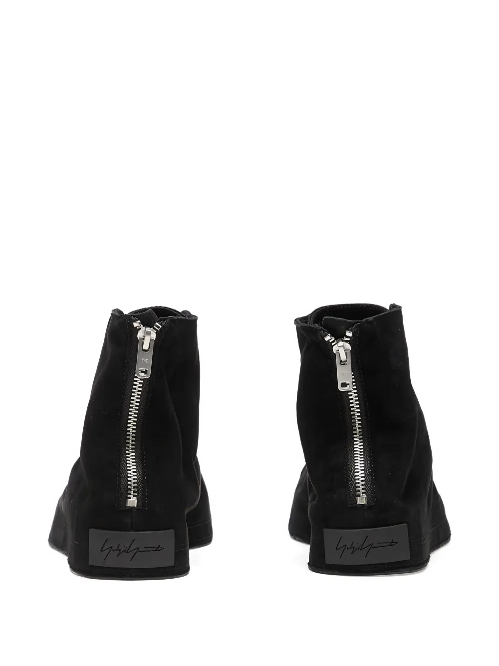 Sneakers Y-3 Lace-Up Zip negru, din piele intoarsa, sport, cu profil inalt, inchidere cu sireturi si fermoar la spate, brant la spate cu logo gravat, captuseala din textil, bot rotund din cauciuc si talpa dreapta. 100% textil; 100% piele intoarsa; 100% cauciuc.