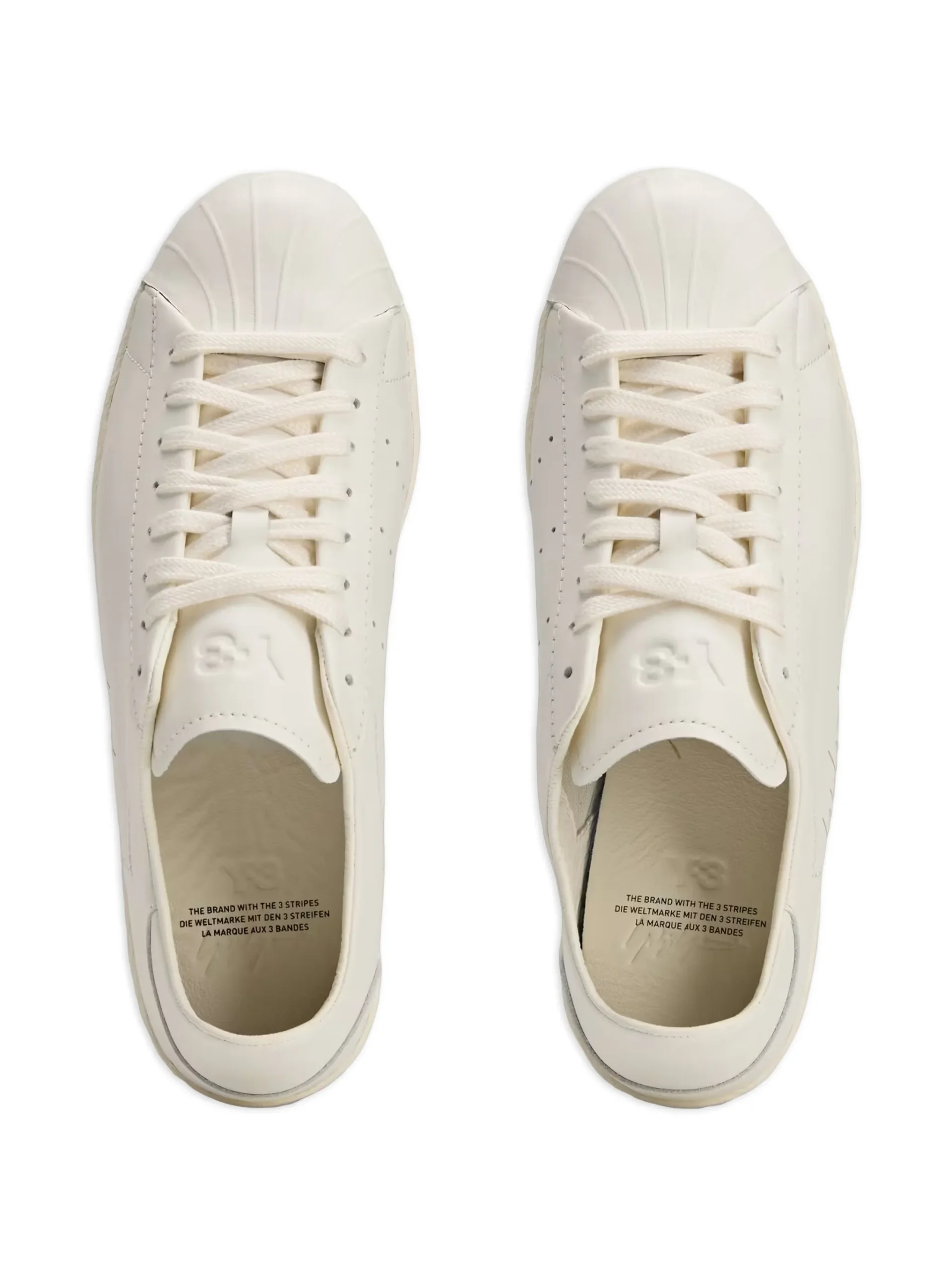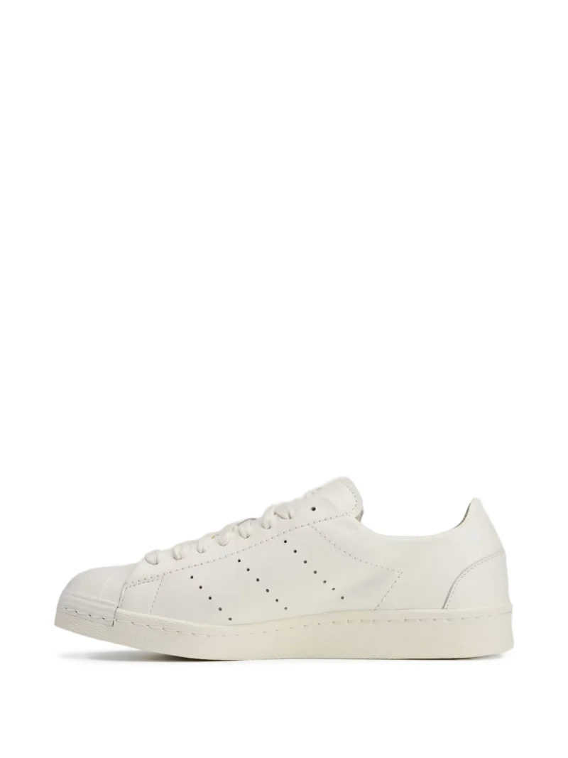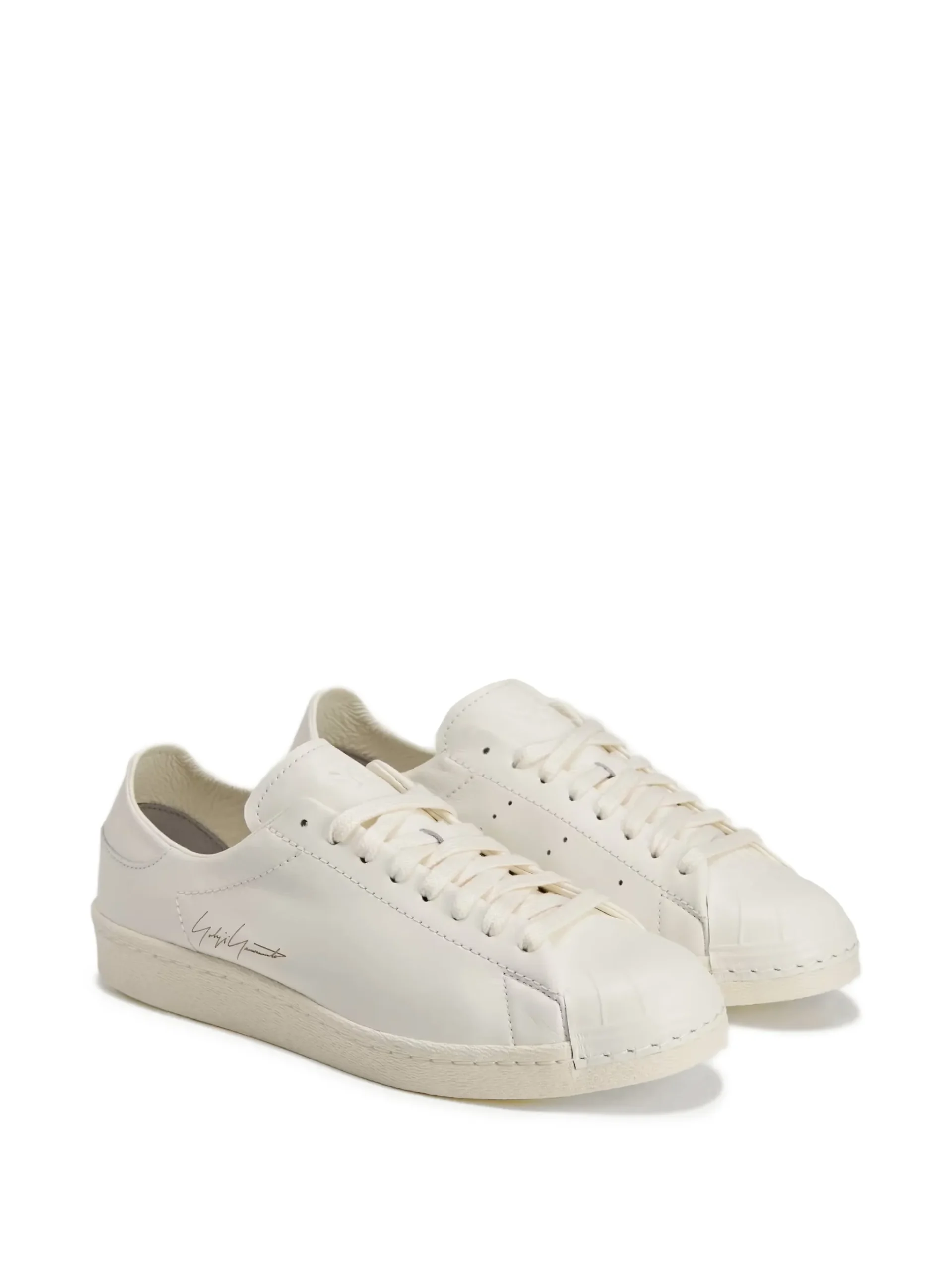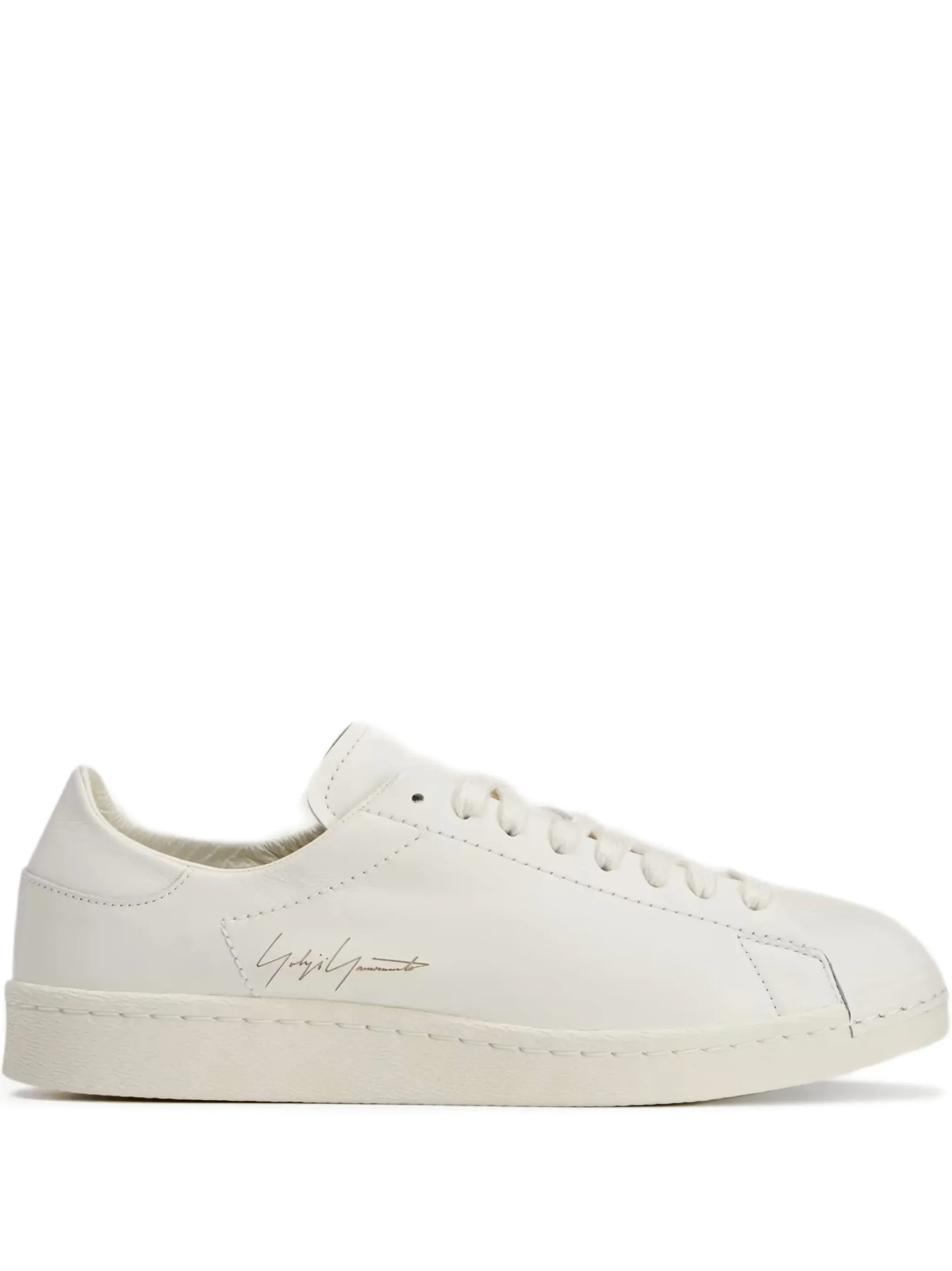 Sneakers Y-3 Superstar albi, cu profil jos, logo Yohji Yamomoto imprimat pe laterale, inchidere cu siret si talpa din cauciuc.100% piele