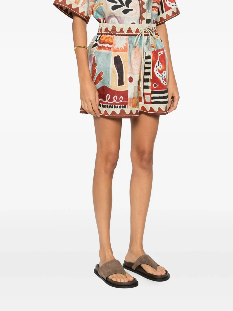 Sort Alemais Michelle abstract-print multicolor cu imprimeu abstract, talie elastica si snur reglabil. 100% in