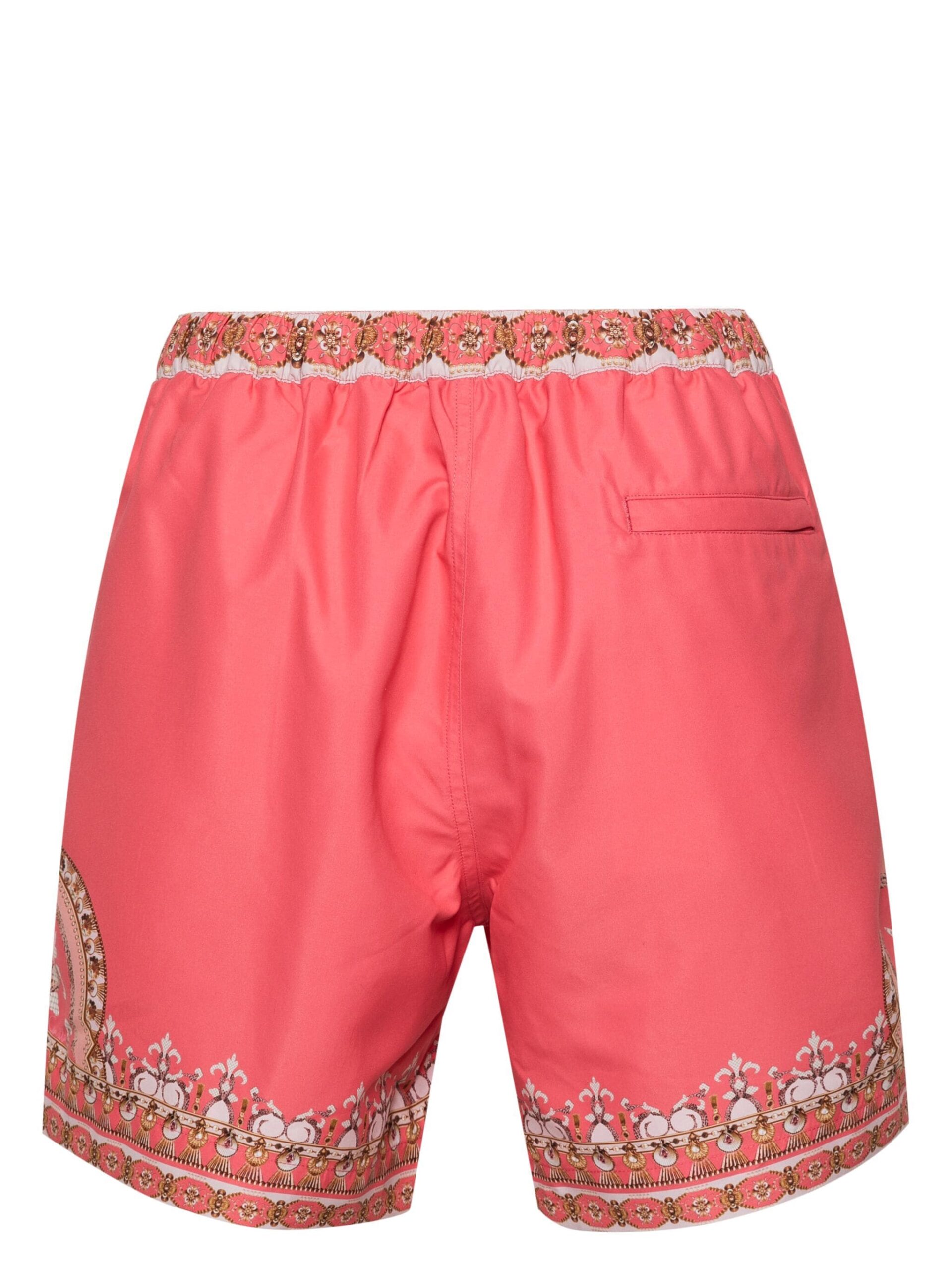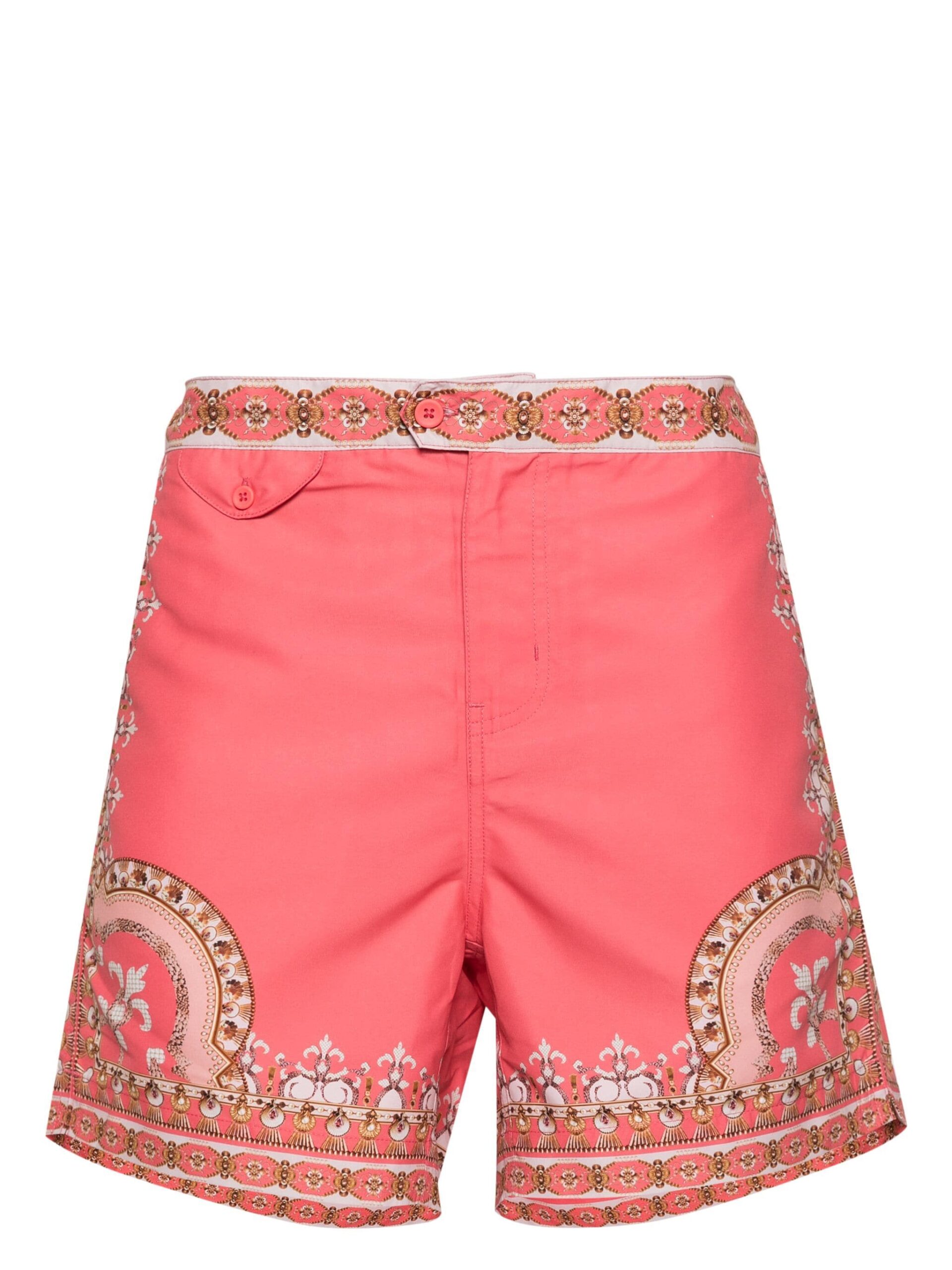 Sort de baie roz din poliester reciclat, inchidere cu nasture, buzunar la spate, model grafic Camilla Shell Games imprimat pe toata suprafata si croiala relaxata. 100% poliester reciclat; 85% nailon; 15% elastan. Aveti grija sa probati costumele de baie deasupra propriilor articole de imbracaminte.