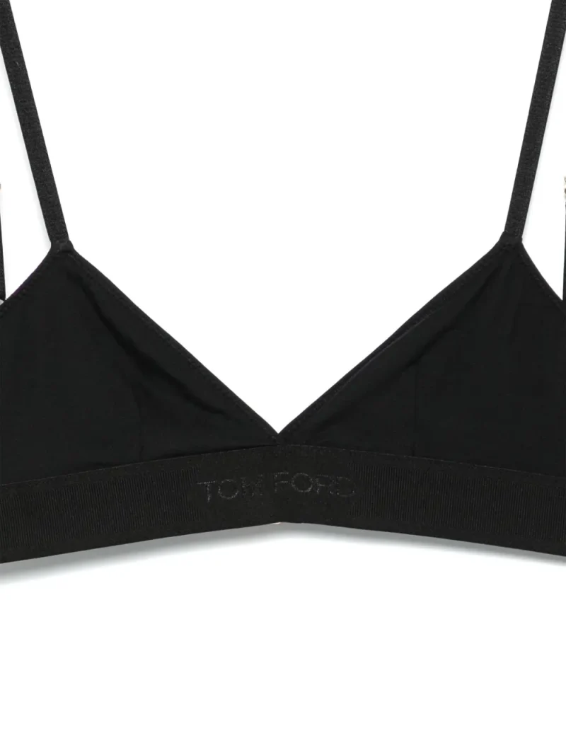 Sutien TOM FORD Logo-Underband negru, din modal, cu barete ajustabile pentru umeri, cupe in forma de triunghi, logo TOM FORD in tesatura si inchidere clema. 97% modal; 3% elastan. Aveti grija sa probati costumele de baie deasupra propriilor articole de imbracaminte.