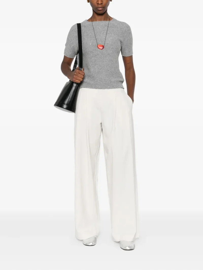 Top Gran Sasso Sequin-Embellishment Short-Sleeve gri, realizat din lana si casmir, cu guler rotund, maneci medii si decorat cu paiete sclipitoare in tricotaj. Potrivit pentru sezonul toamna/iarna. 67% lana; 28% casmir; 3% fibre metalice; 2% nylon.