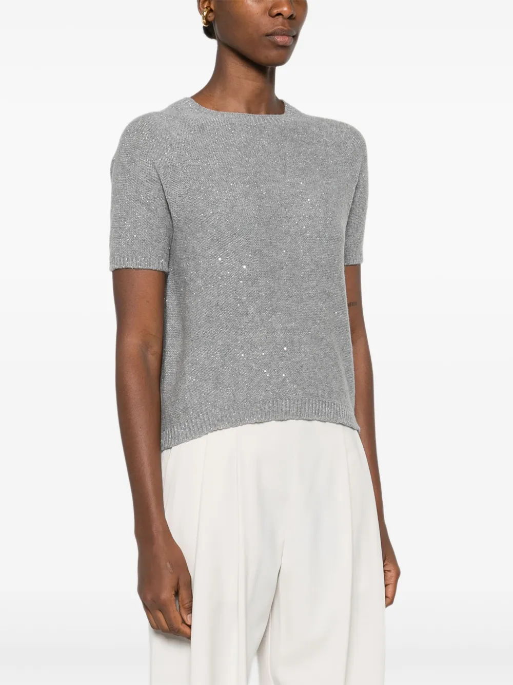 Top Gran Sasso Sequin-Embellishment Short-Sleeve gri
