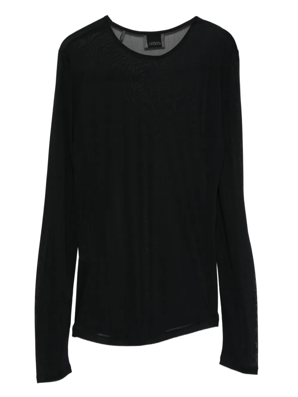 Top Isabel Marant Sheer-Panel Long-Sleeve negru, din viscoza, cu guler rotund, maneci lungi, tesatura mesh si tiv drept. Potrivit pentru sezonul toamna/iarna. 80% viscoza; 20% matase.