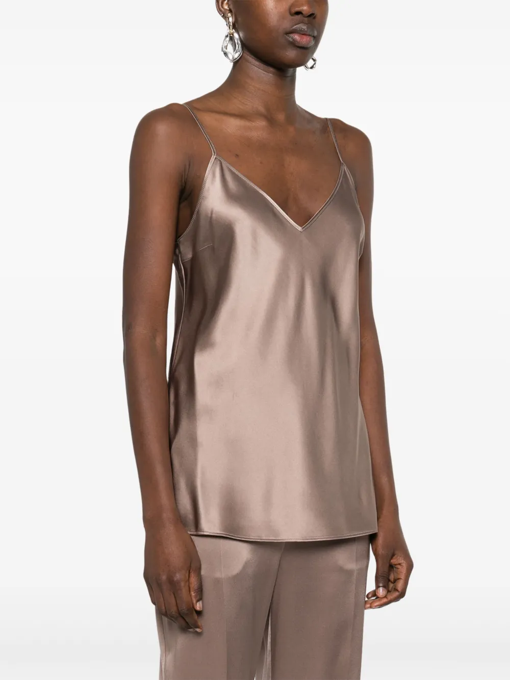 Top JOSEPH Clea maro, din matase satinata, cu barete tip spaghetti ajustabile, decolteu in V si tiv drept. Potrivit pentru sezonul primavara/vara. 100% matase.