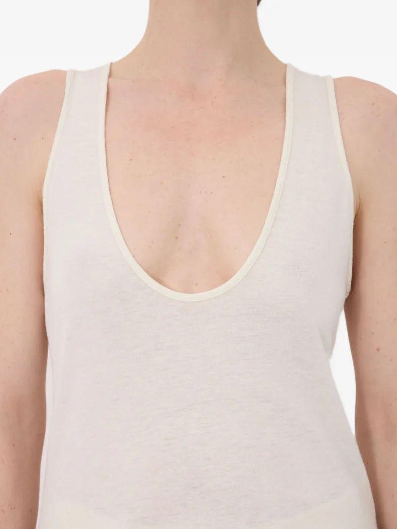 Top LouLou De Saison scoop-neckline tank alb, fara maneci, cu decolteu rotund adanc .70% vascoza 30% lana