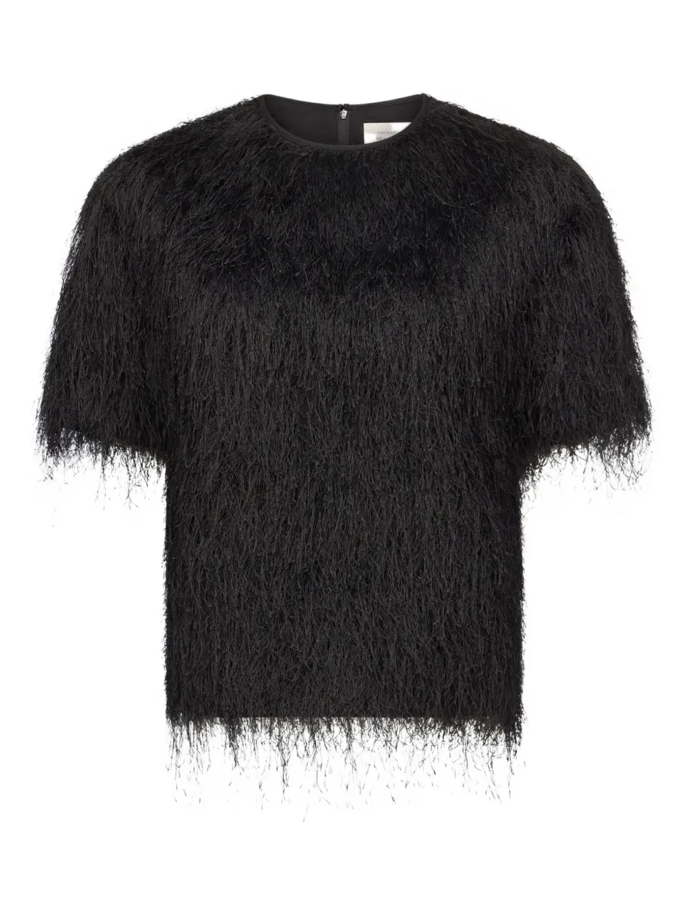 Top LouLou de Saison Zaro Fringed Short-Sleeve negru