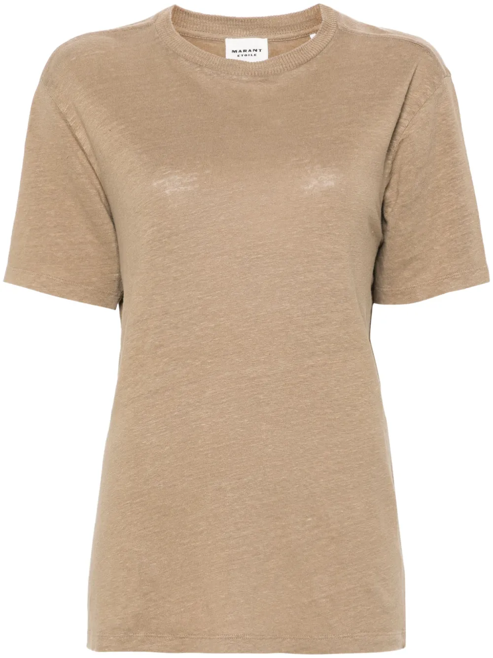 Top Marant Etoile Zewel khaki, din in, cu guler rotund, maneci scurte, testaura tricotata si tiv drept. Potrivit pentru sezonul primavara/vara. 100% in.