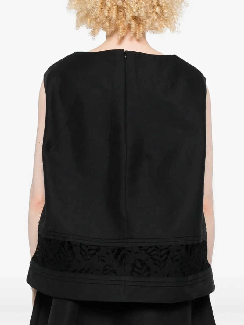 Top Marni lace-insert negru, inchidere cu fermoar, insertie dantela, decolteu rotund, fara maneci. 100% bumbac