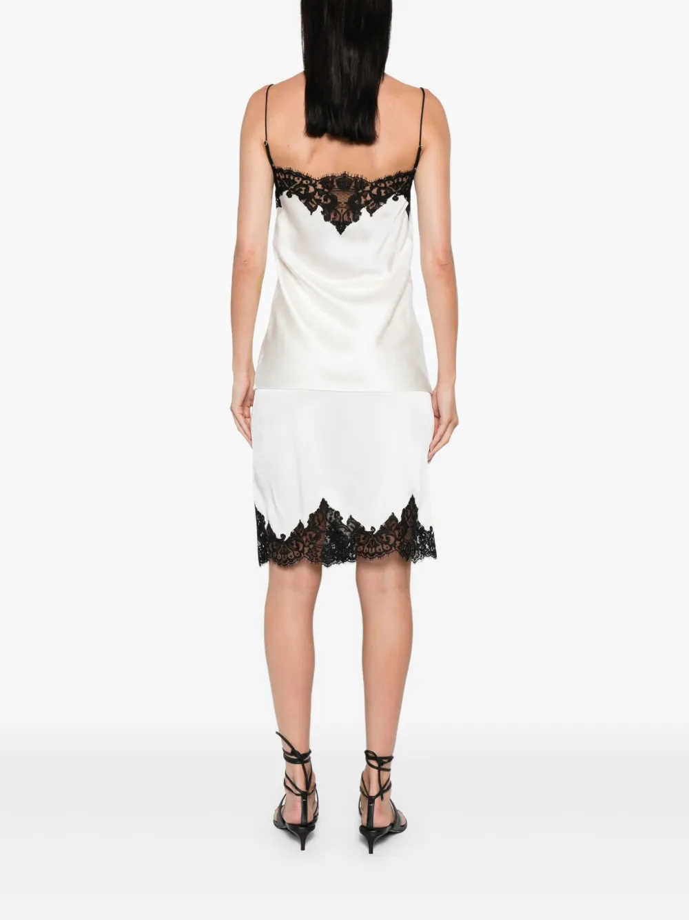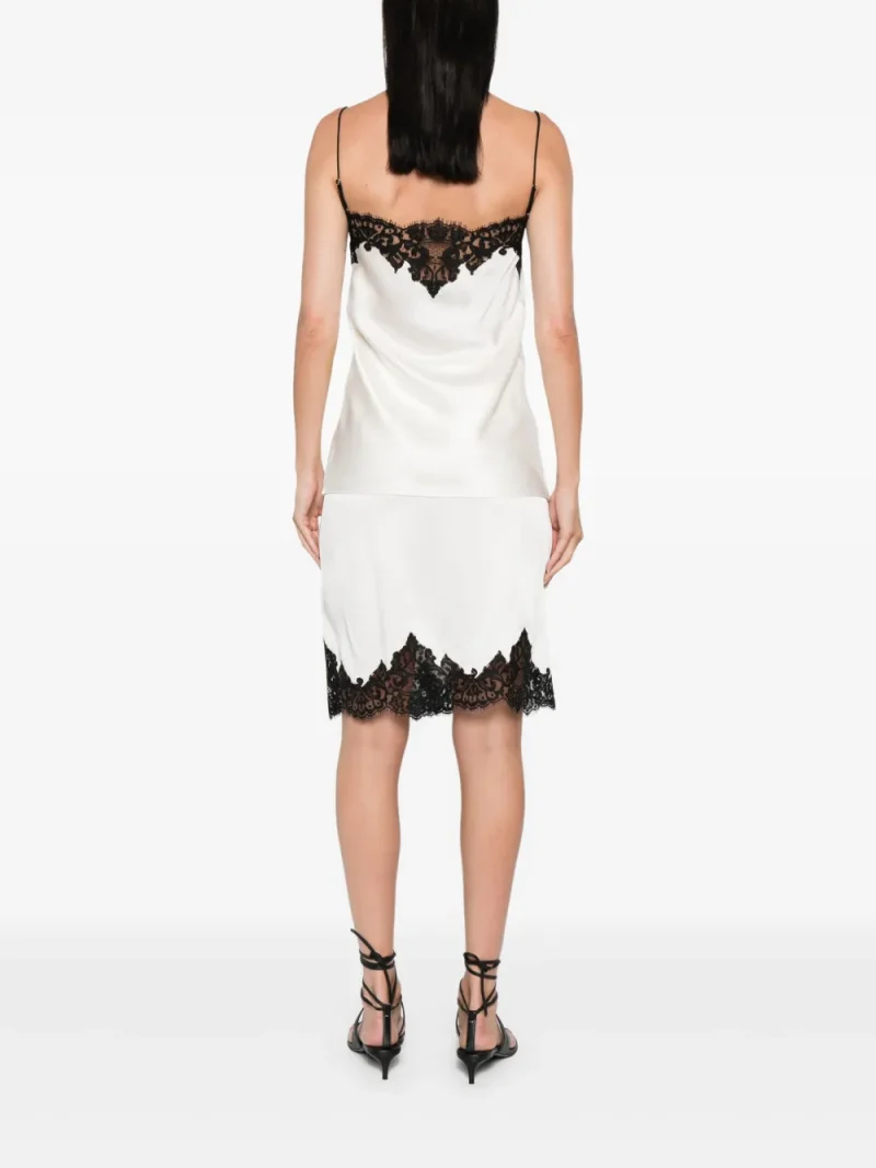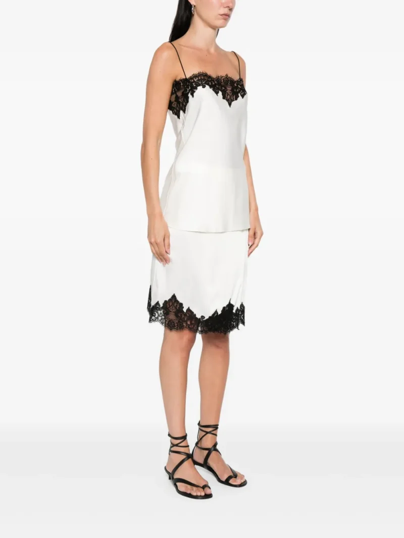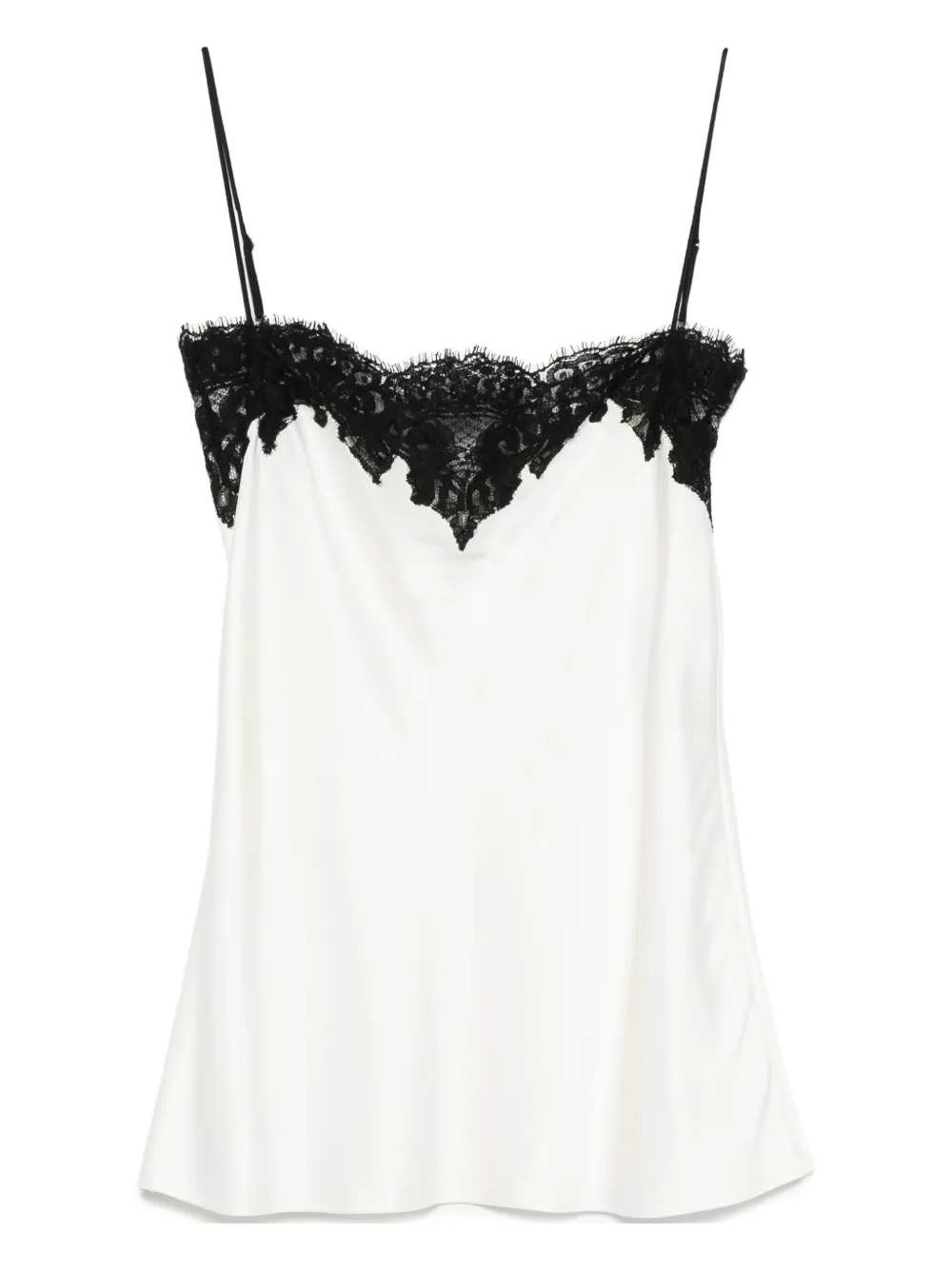 Top Stella McCartney sleeveless lace satin alb, cu detalii din dantela, bretele subtiri, croiala dreapta, terminatie dreapta. 69% bumbac 31% poliamida