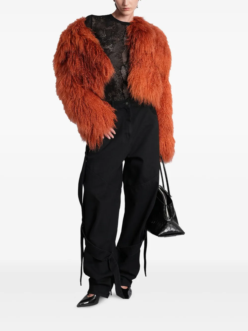 Top The Attico Openwork negru, design openwork semitransparent, cu guler rotund, maneci lungi, model grafic si tiv drept. Potrivit pentru sezonul toamna/iarna. 82% bumbac; 18% nylon.