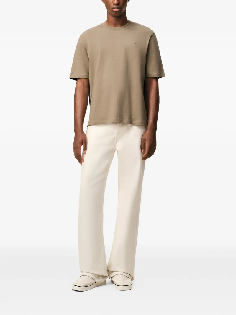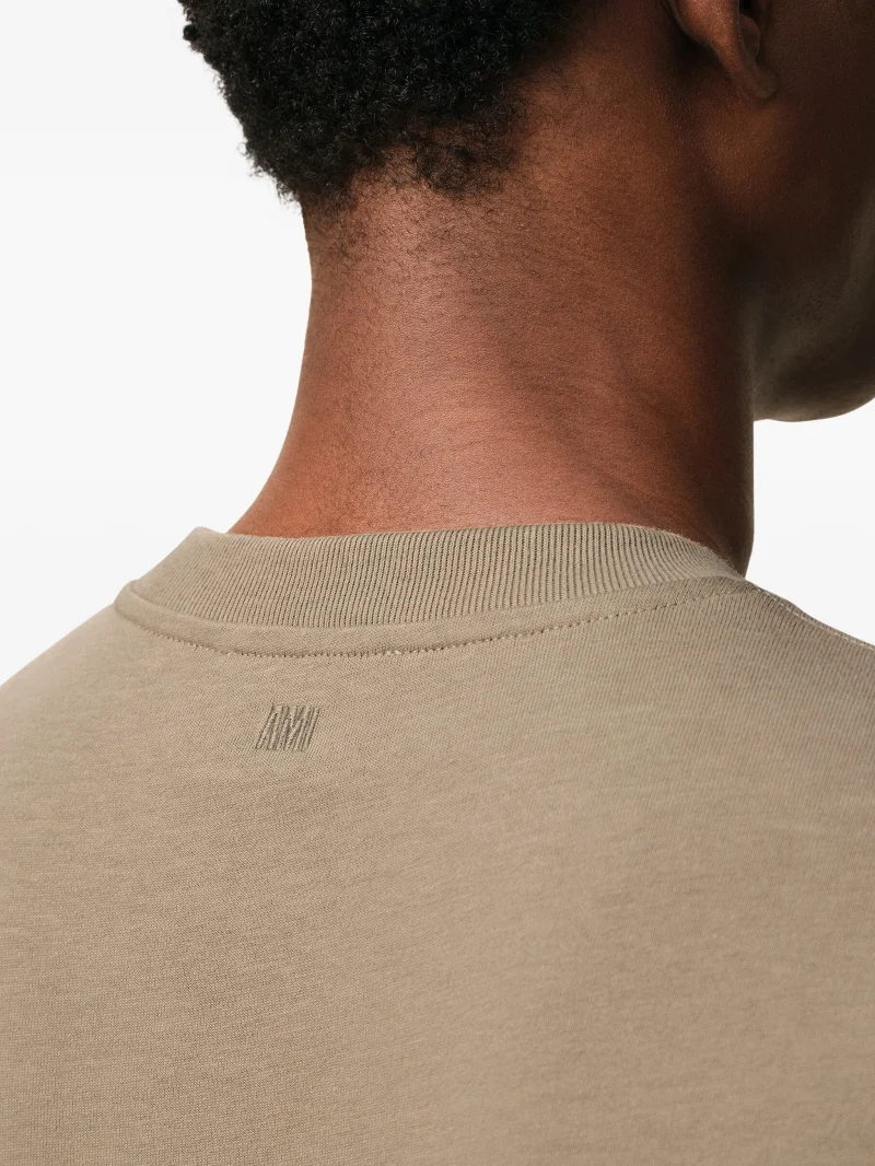 Tricou AMI Paris Ami de Coeur Embossed maro, realizat din bumbac, cu guler crewneck, maneci scurte, logo embosat la piept, AMI brodat la spate si tiv drept. Potrivit pentru sezonul primavara/vara. 100% bumbac.