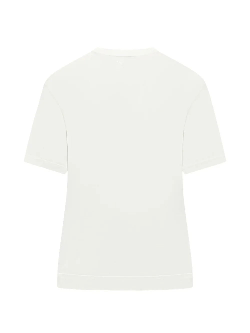 Tricou AMI Paris Cotton alb, realizat din bumbac dens, design minimalist cu guler crewneck, maneci scurte si tiv drept. Potrivit pentru sezonul primavara/vara. 100% bumbac.
