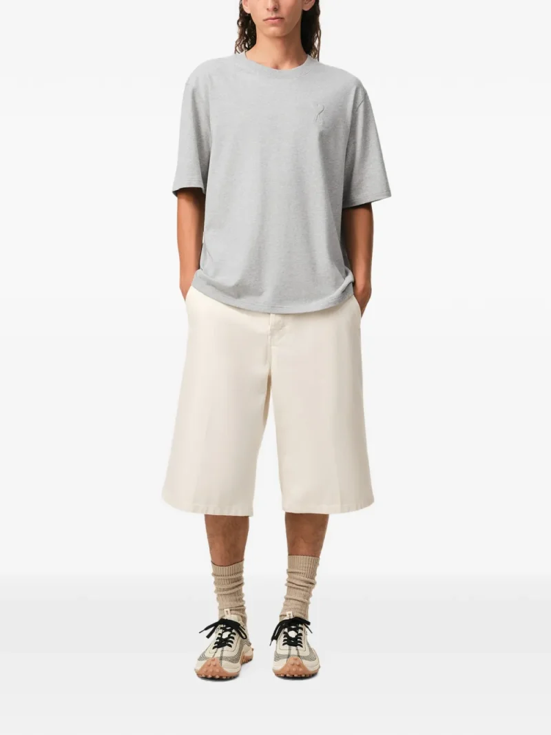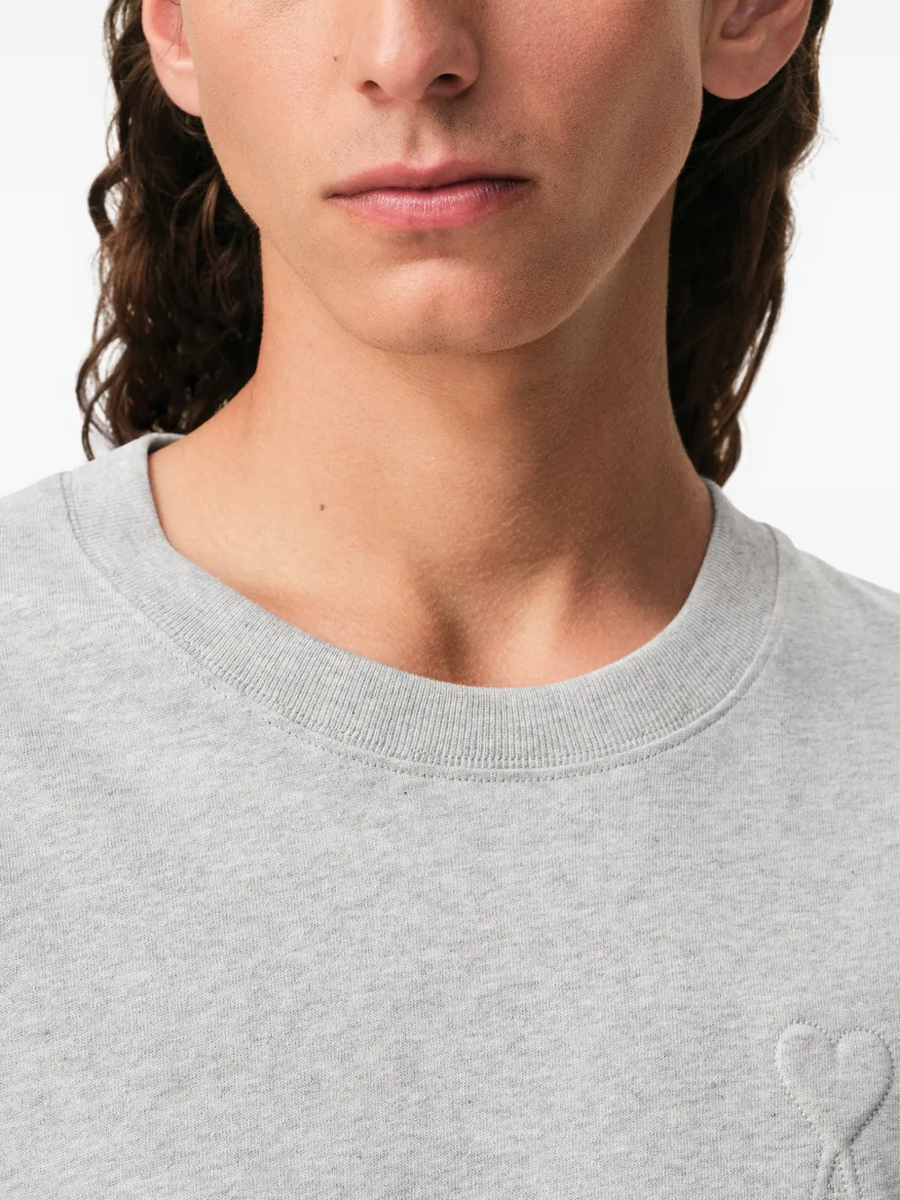 Tricou AMI Paris Crew-Neck gri, realizat din bumbac, cu guler crewneck, maneci scurte, logo AMI embosat la piept si tiv drept. Potivit pentru sezonul primavara/vara. 100% bumbac.