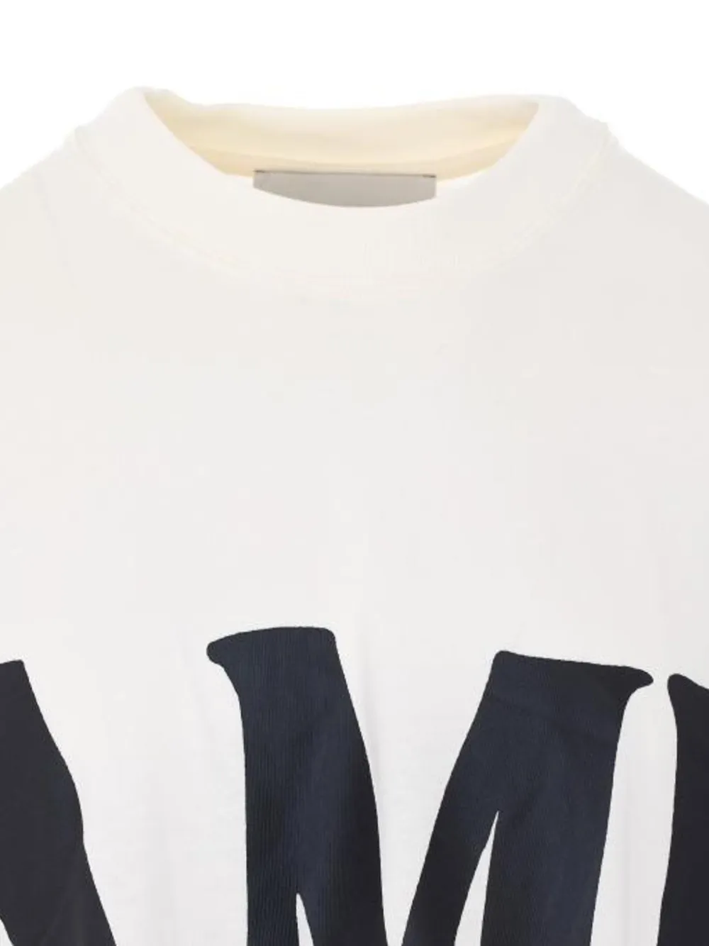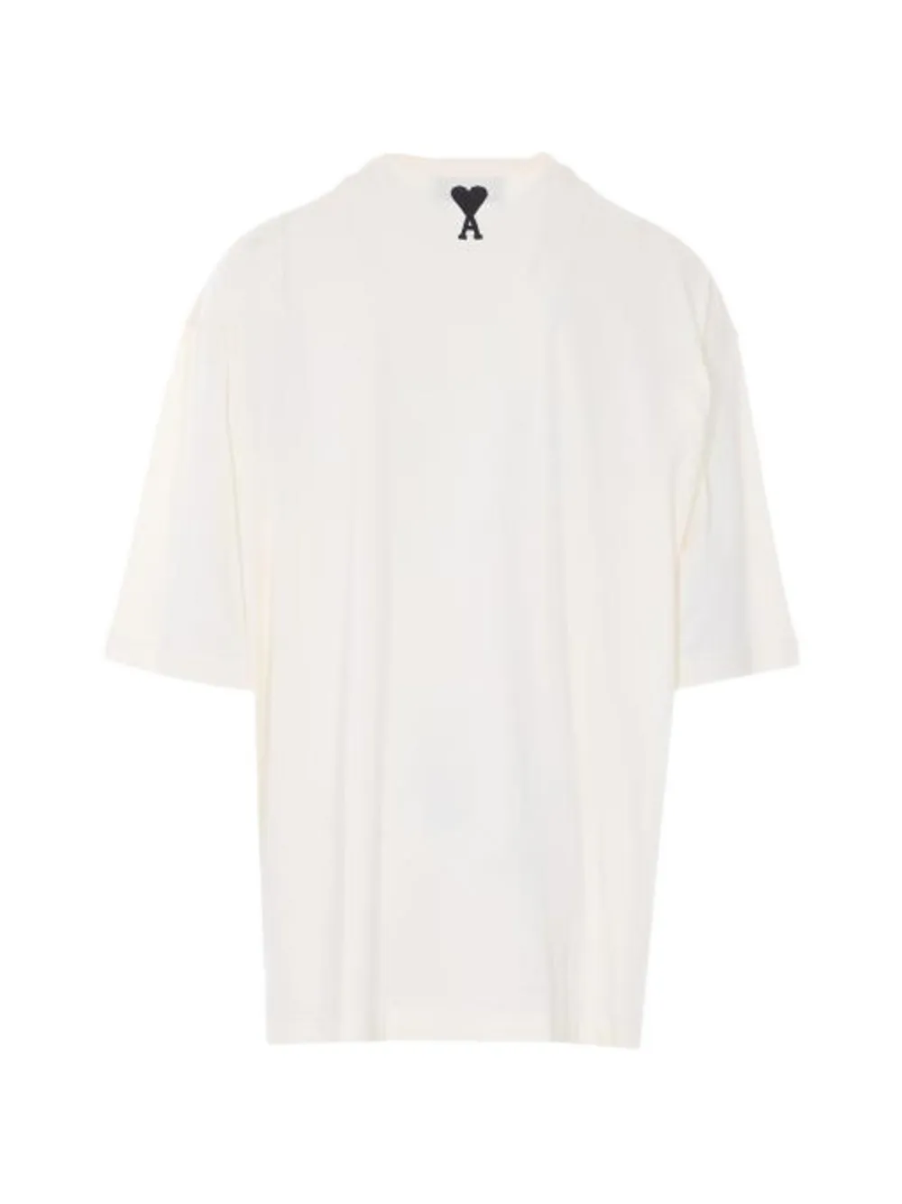 Tricou AMI Paris Logo-Detail bej, realizat din bumbac dens, cu guler crewneck, umeri cazuti, maneci scurte, grafica supradimensioanata pe partea superioara, logo brodat la spate si tiv drept. Potrvit pentru sezonul primavara/vara. 1005 bumbac.