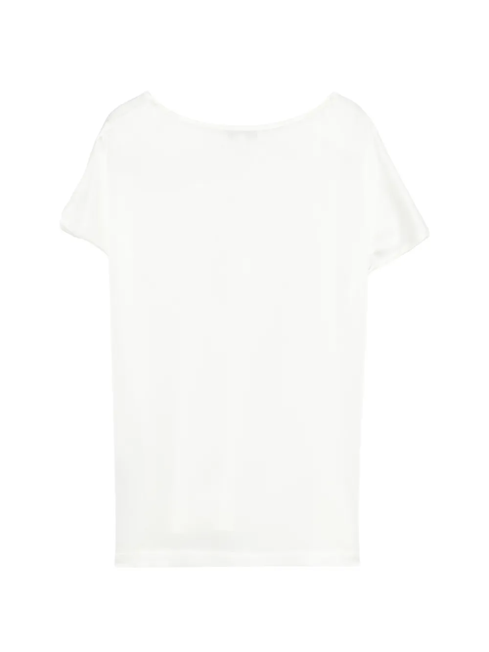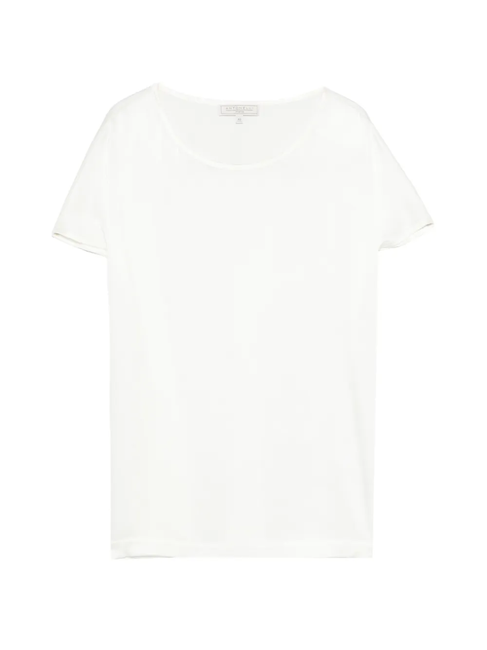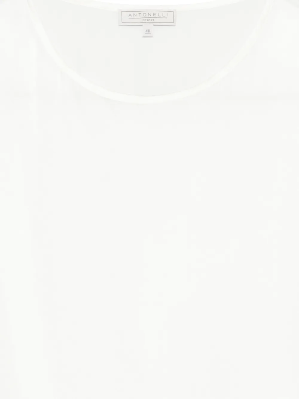 Tricou Antonelli Clara Short-Sleeve alb, realizat din matase, cu guler rotund, maneci scurte, aspect satinat si tiv drept. Potrivit pentru sezonul primavara/vara. 96% matase; 4% elastan.