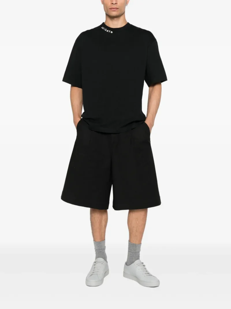 Tricou Axel Arigato Logo-Embellished negru, realizat din bumbac, cu guler crewneck din tricot ribbed, maneci scurte, logo brodat la guler si tiv drept. Potrivit pentru sezonul toamna/iarna. 100% bumbac organic.
