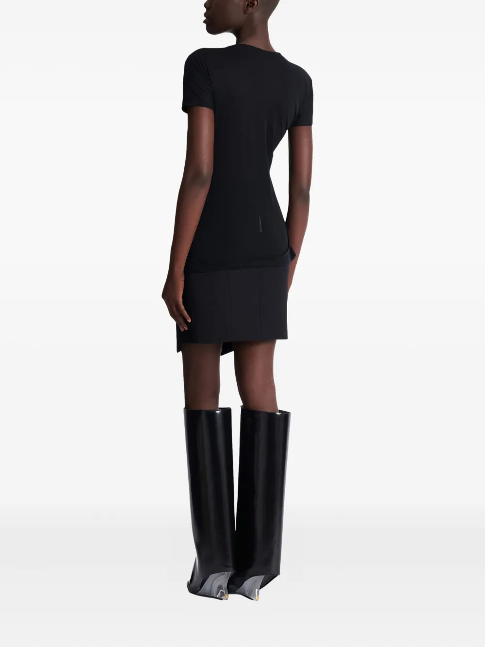 Tricou Balmain crew-neck negru, cu design drapat, decolteu rotund, maneci scurte si detaliu incretit.100% bumbac