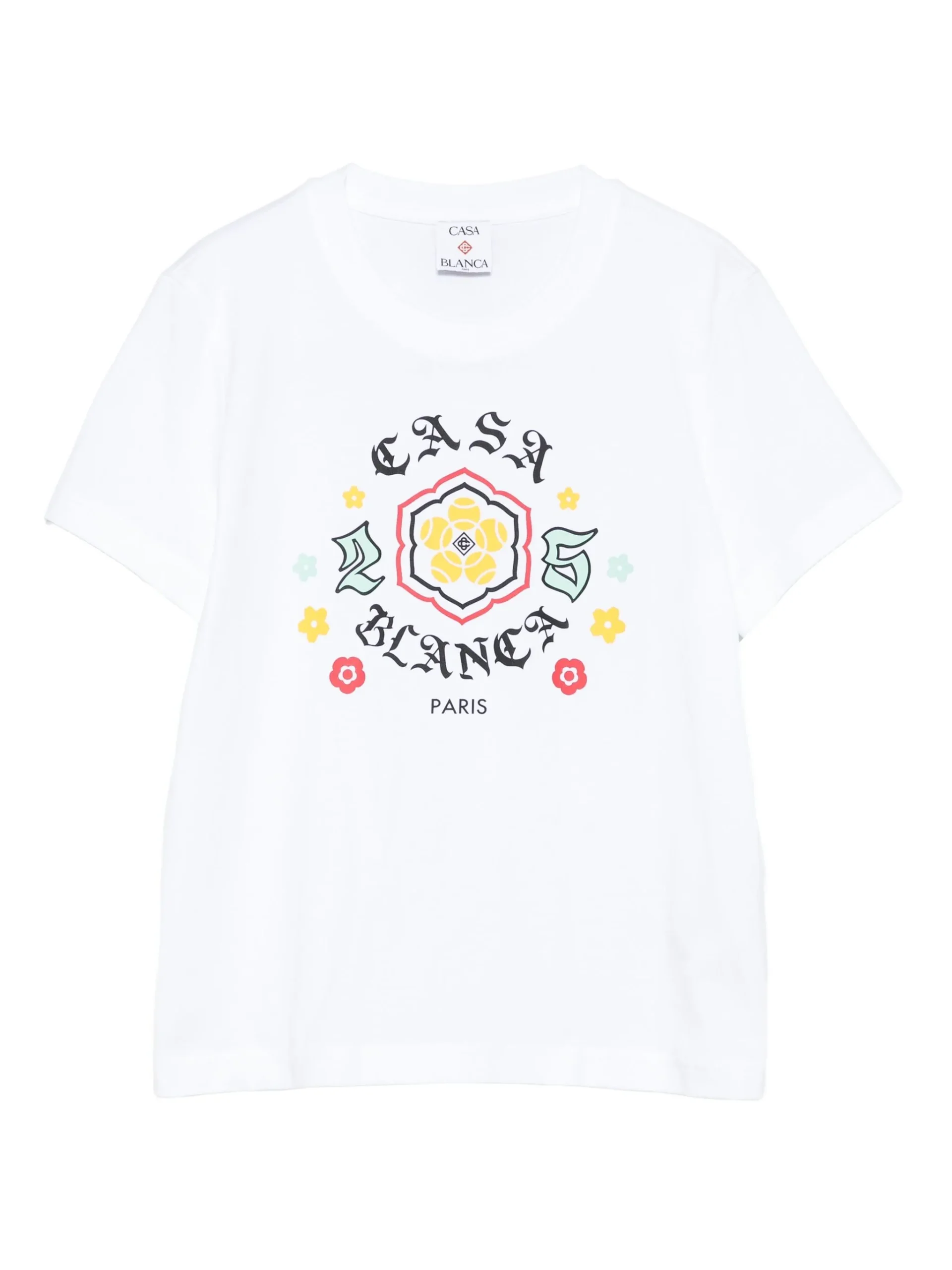 Tricou Casablanca floral-print alb, imprimeu floral, guler rotund, maneci scurte si tiv drept. Potrivit pentru sezonul primavara/vara.100% bumbac