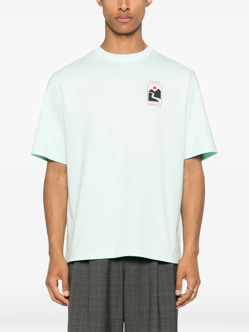 Tricou Casablanca Sunset Valley alb, imprimeu grafic pe fata, imprimeu grafic pe spate, maneci scurte, guler rotund. Potrivit pentru sezonul primavara/vara.100% bumbac