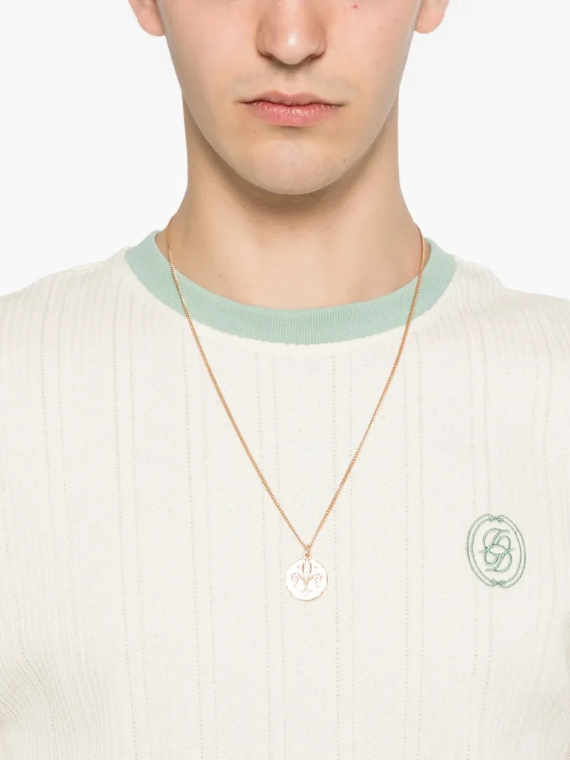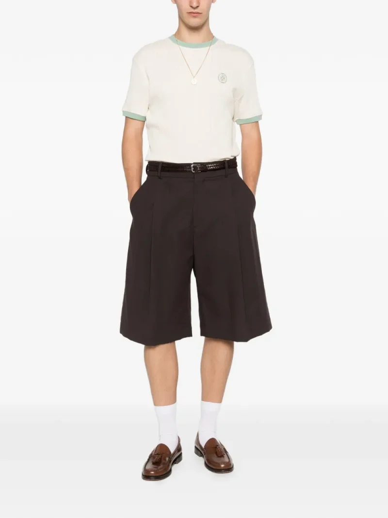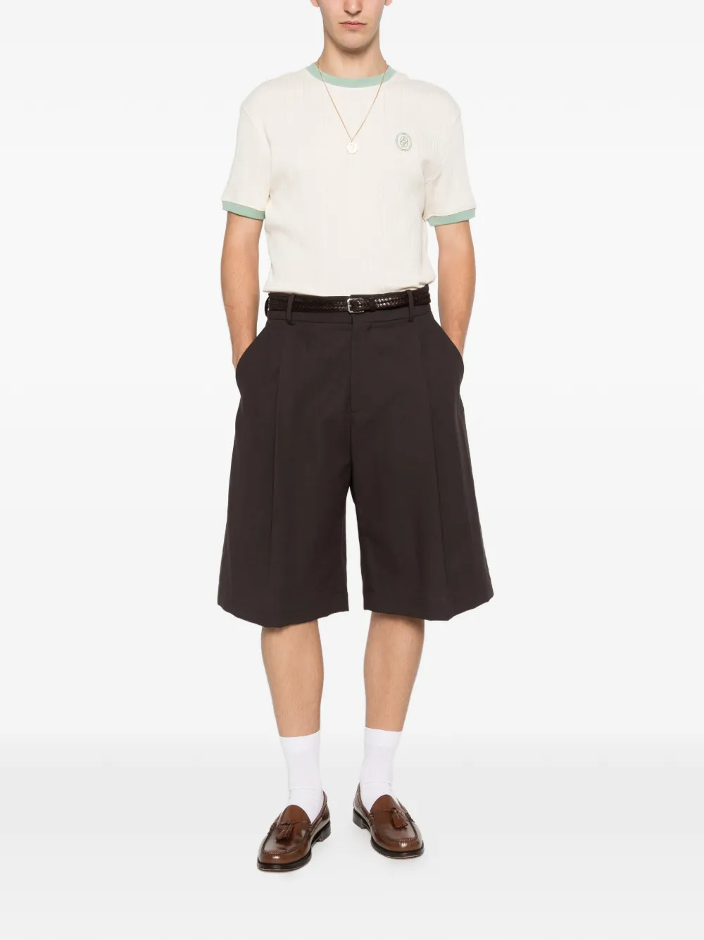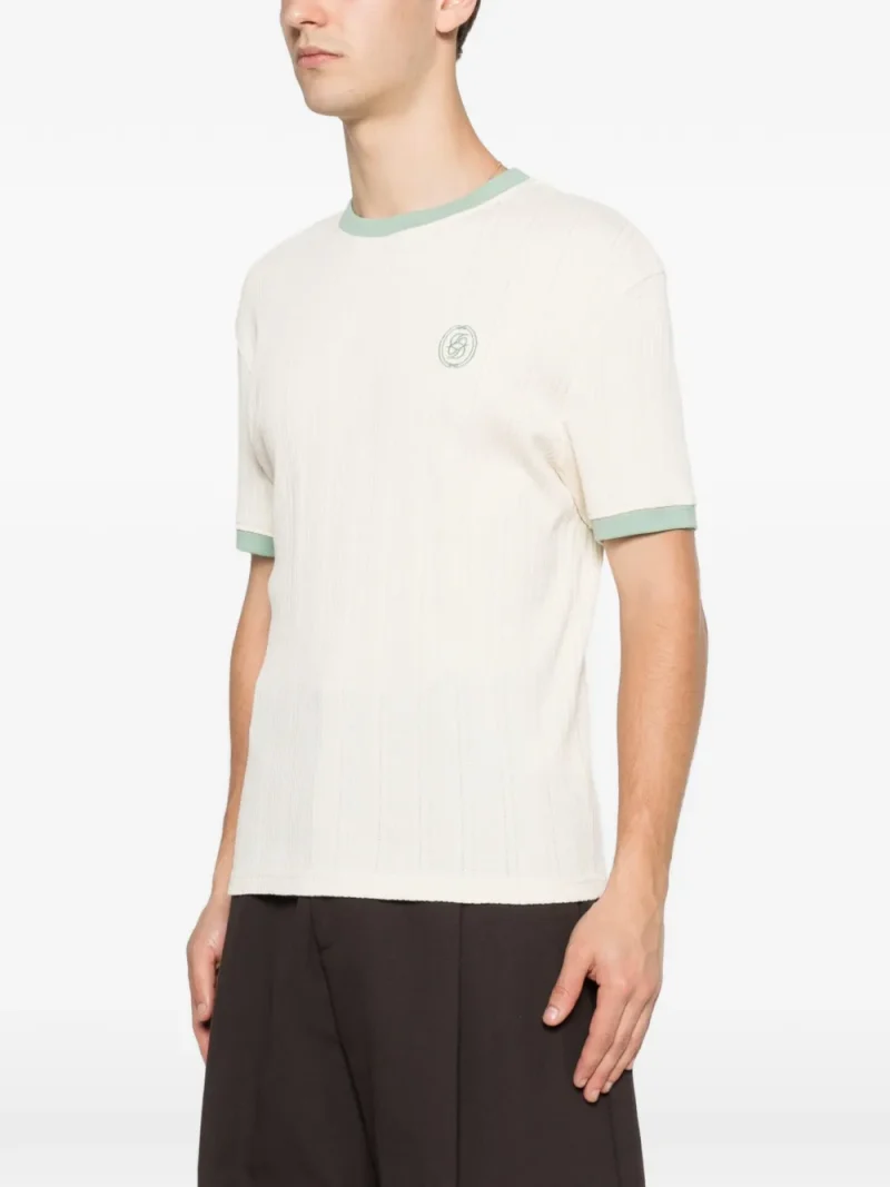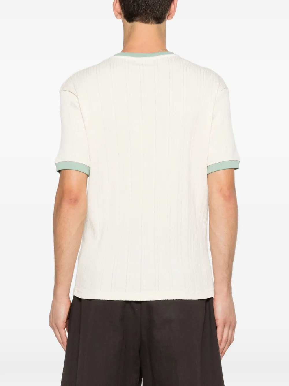 Tricou Drole De Monsieur Ribbed Trim ecru, realizat din bumbac, cu guler crewneck, manecu scurte, broderie logo la piept, tesatura ribbed, dungi in constrast menta si tiv drept. Potrivit pentru sezonul primavara/vara. 100% bumbac.