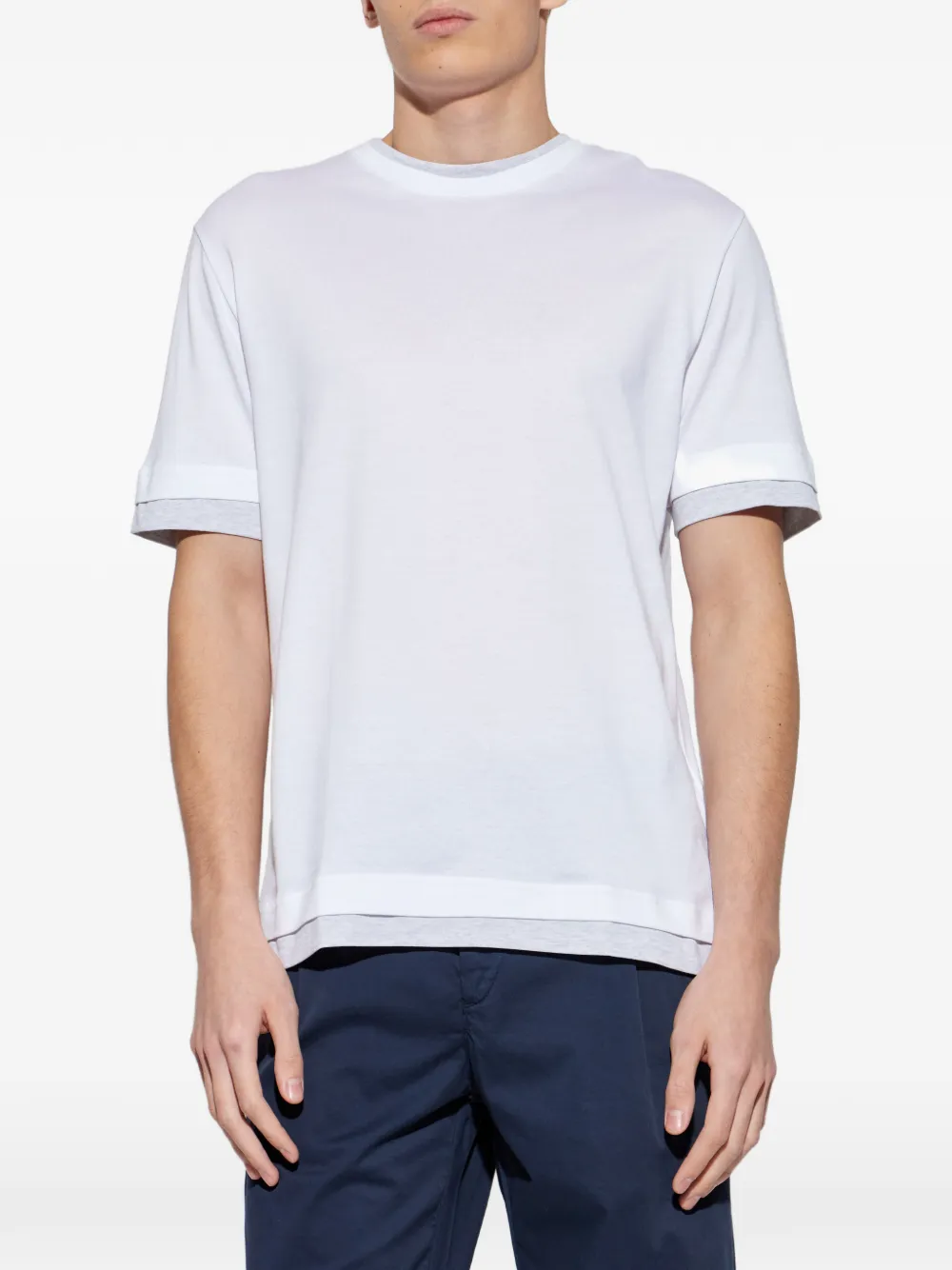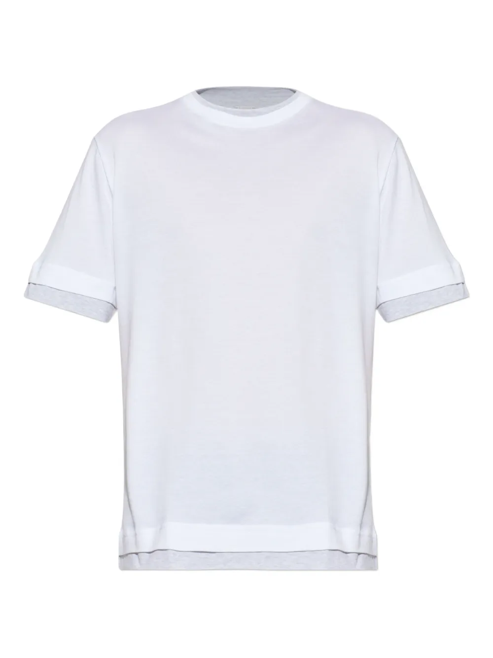 Tricou Eleventy Layered-Effect alb, realizat din bumbac, cu guler crewneck, maneci scurte, design minimalist si termiantii in straturi. Potrivit pentru sezonul primavara/vara. 100% bumbac.
