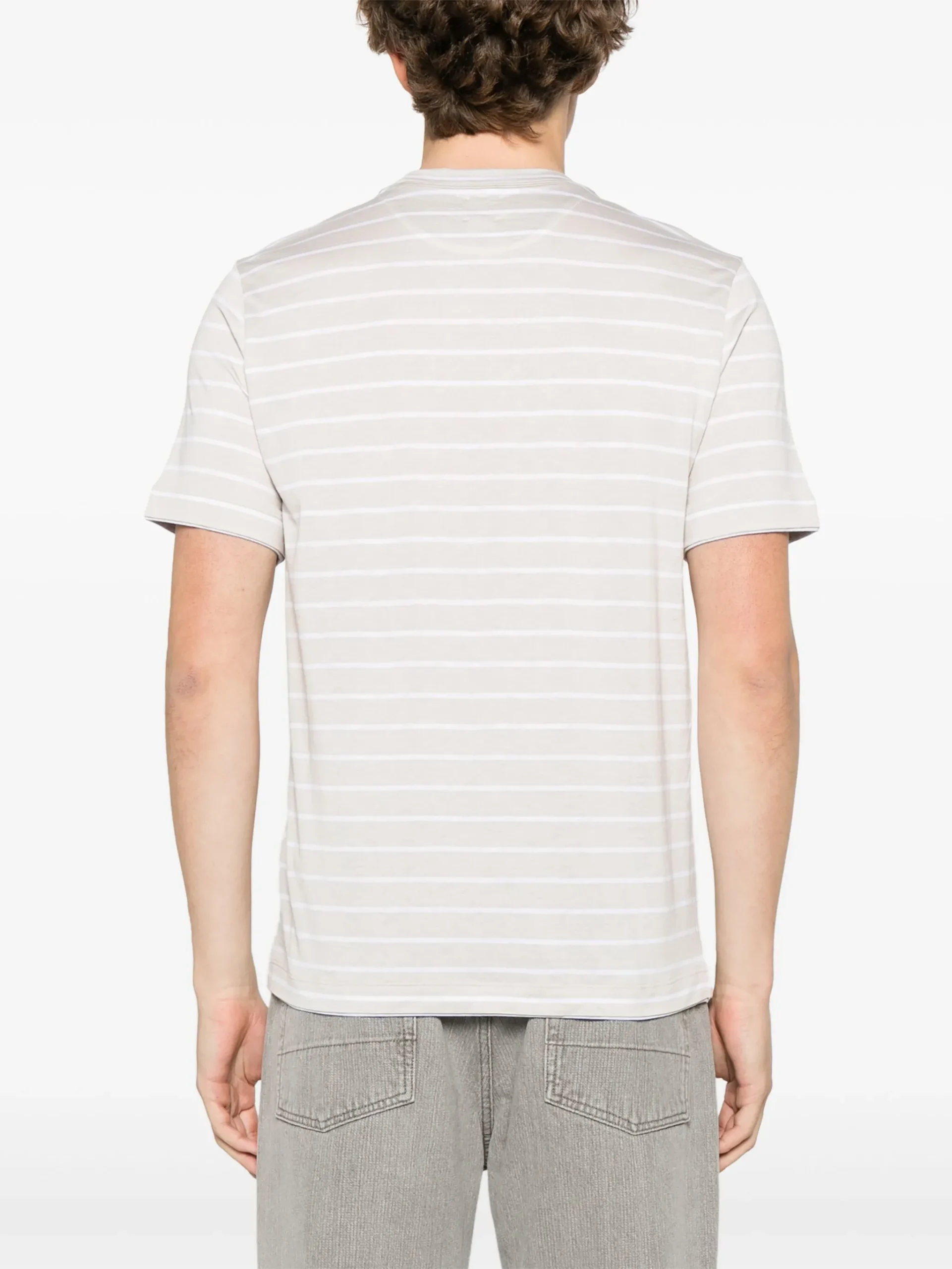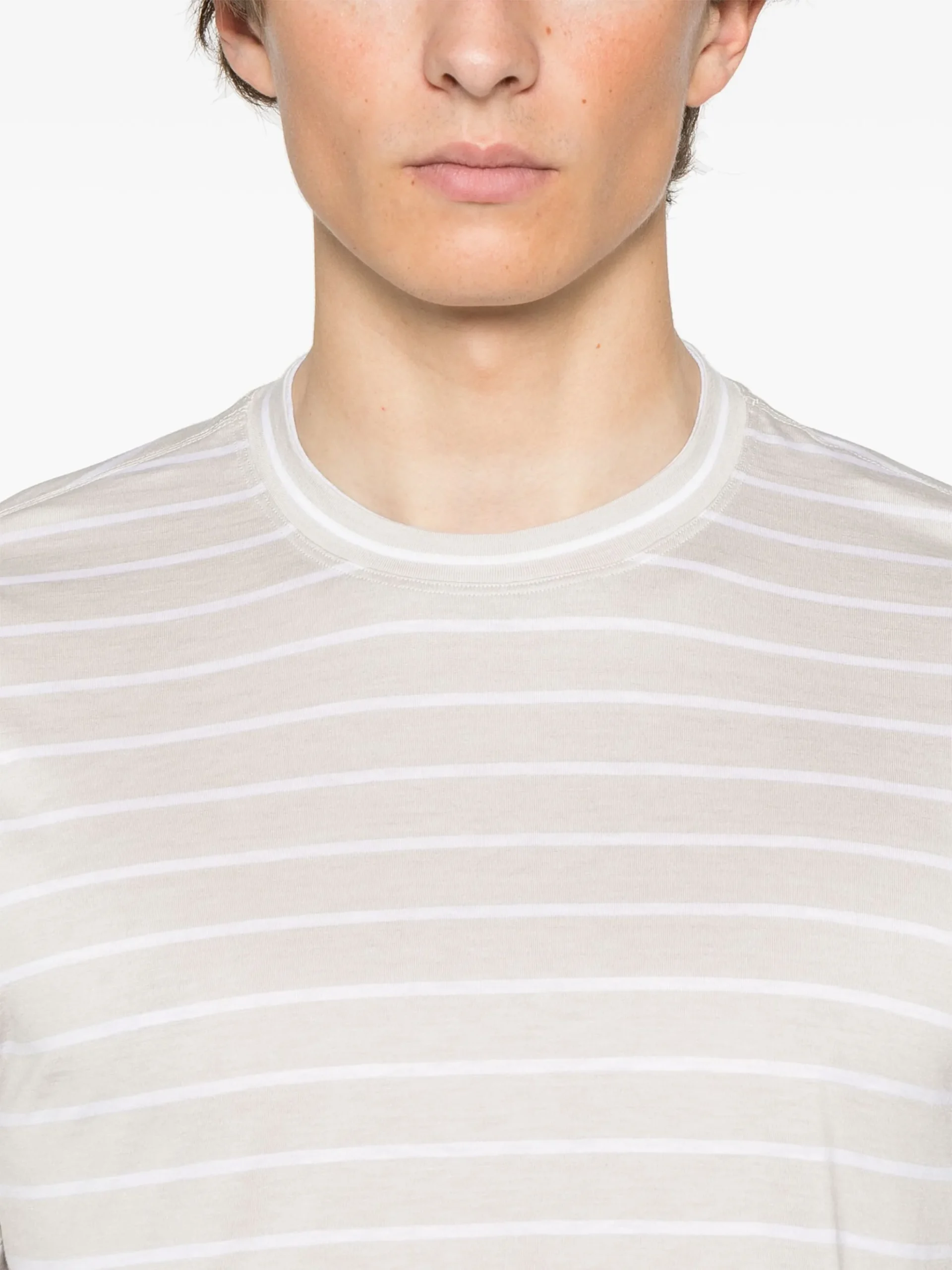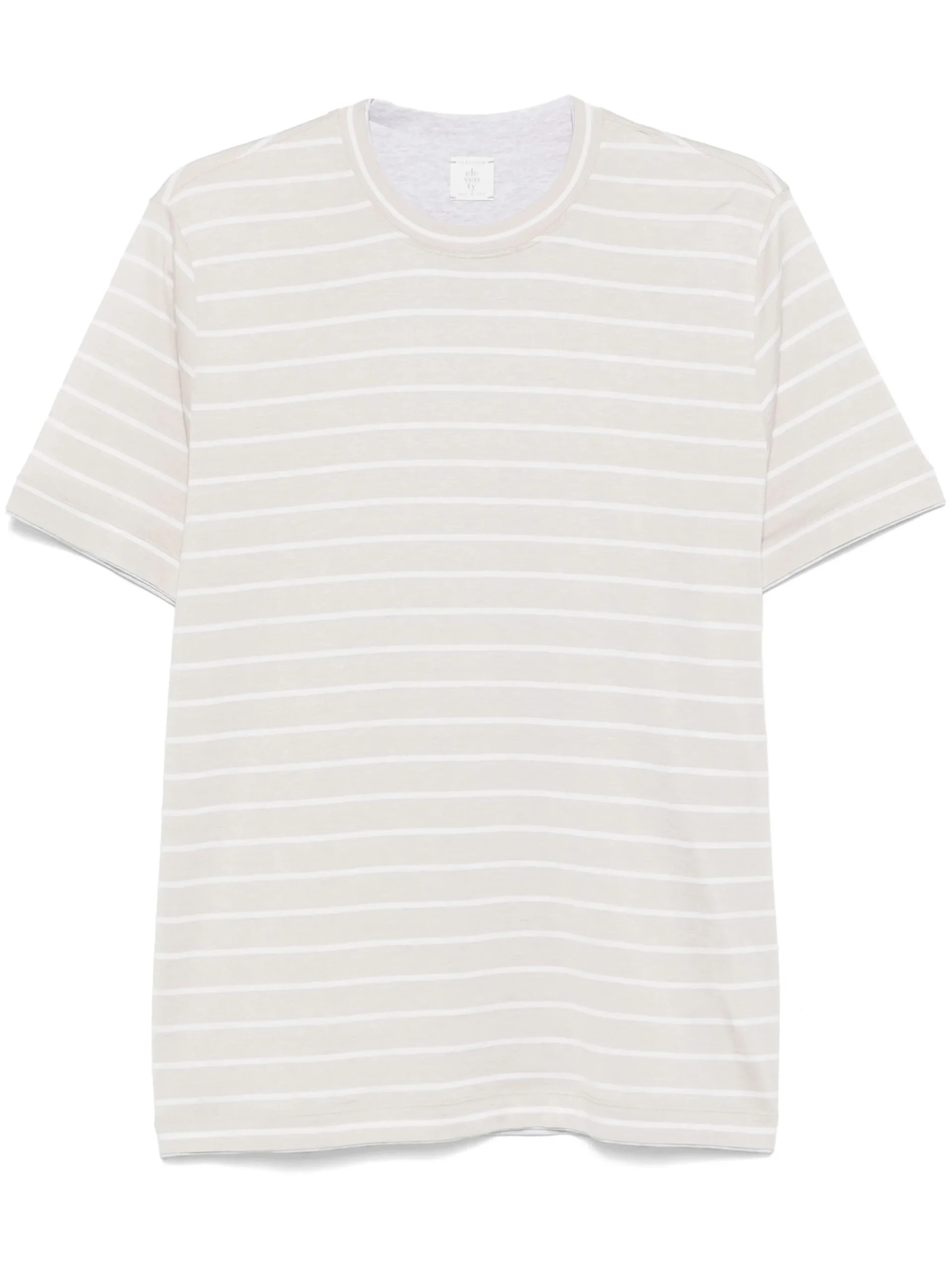 Tricou Eleventy striped alb, guler rotund, maneci scurte, tiv drept. Potrivit pentru sezonul primavara/vara.62% matase 38% bumbac