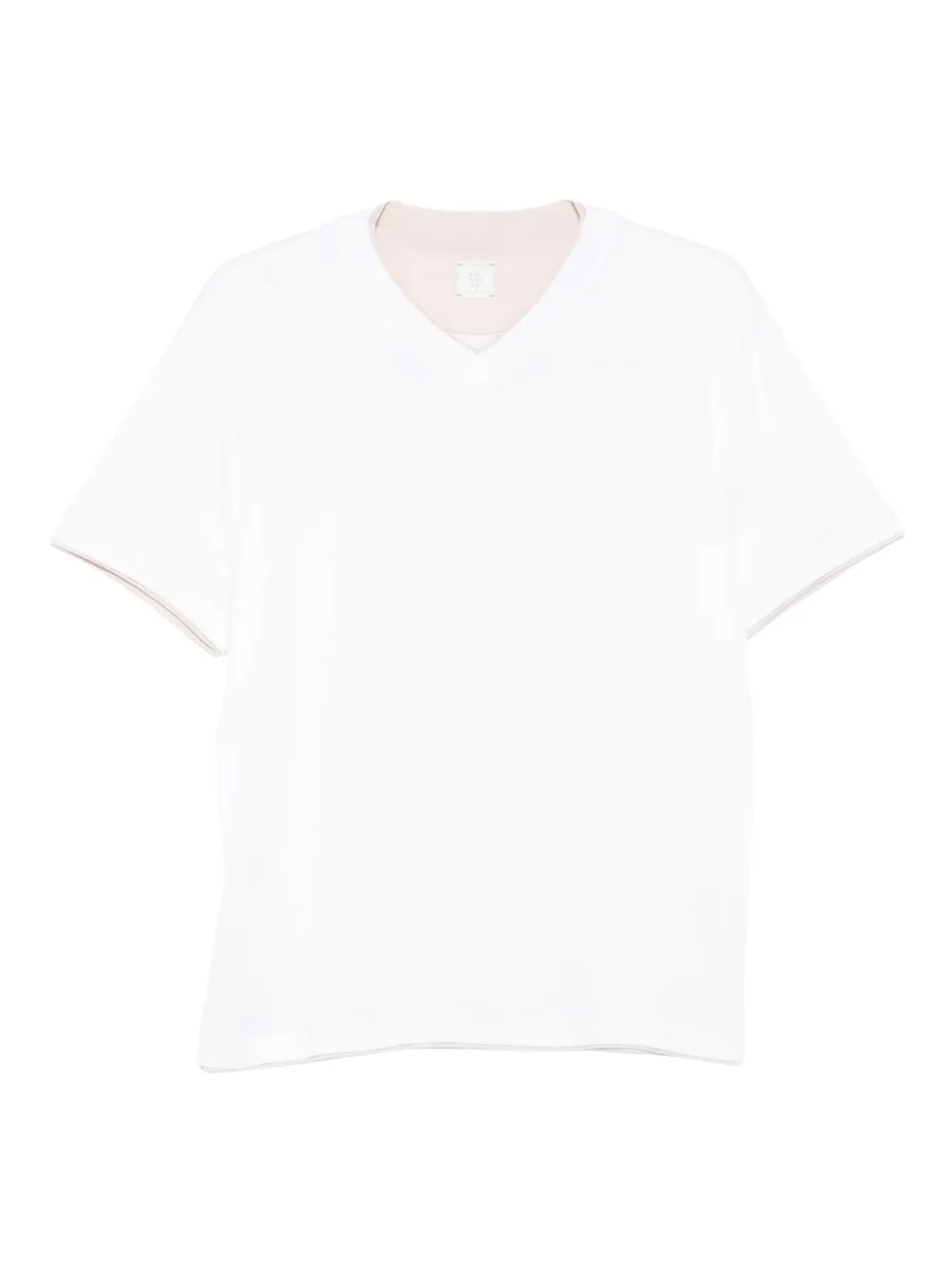 Tricou Eleventy V-neck alb, din bumbac premium, cu guler in V, maneci scurte si tiv drept. Potrivit pentru sezonul toamna/iarna. 100% bumbac.