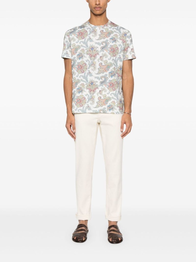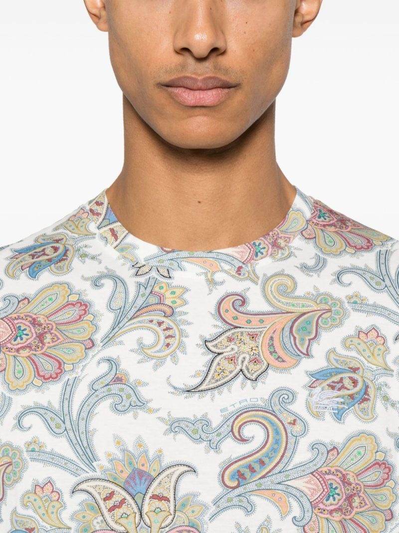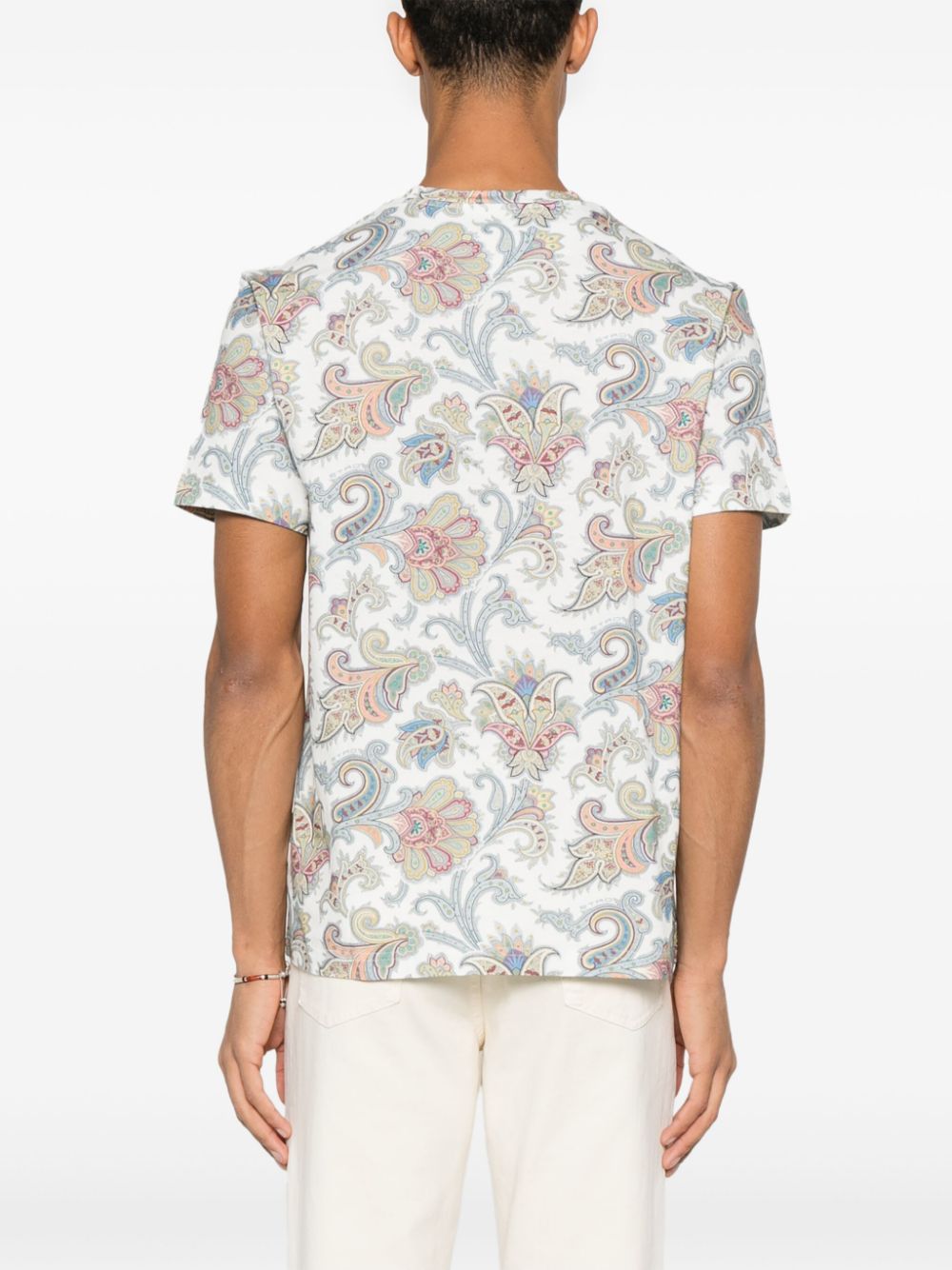 Tricou ETRO Paisley-Print alb, din bumbac, cu guler rotund, maneci scurtem grafica florala imprimata pe toata suprafata si tiv drept. Potrivit pentru sezonul primavara/vara. 100% bumbac.