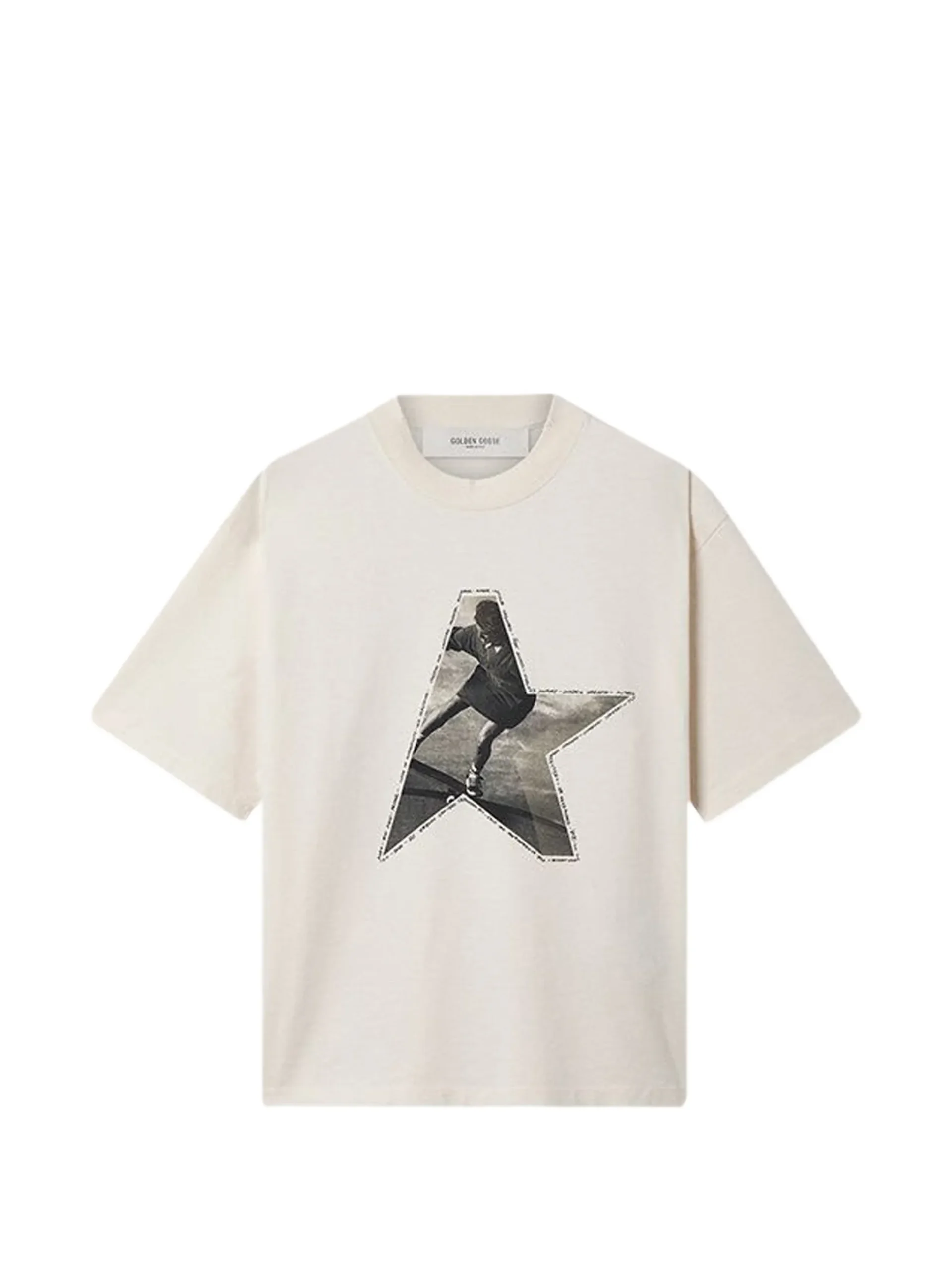 Tricou Golden Goose star-print alb, guler rotund, maneci scurte, imprimeu pe partea din fata si tiv drept.100% bumbac