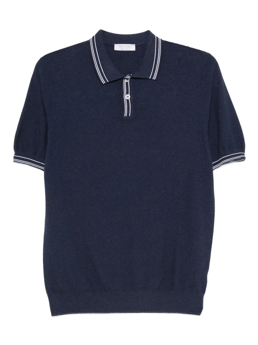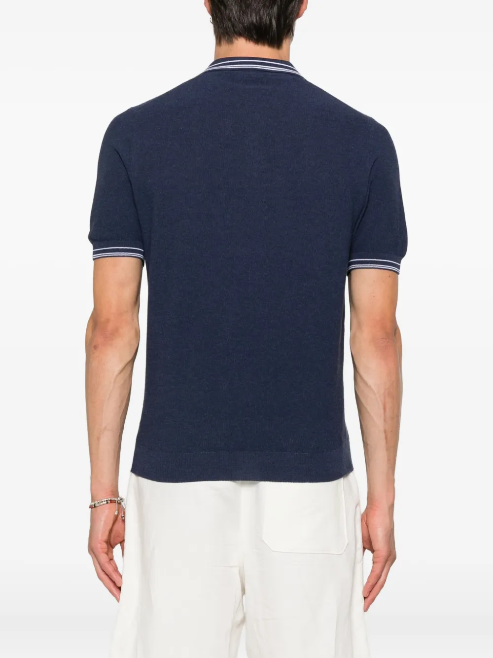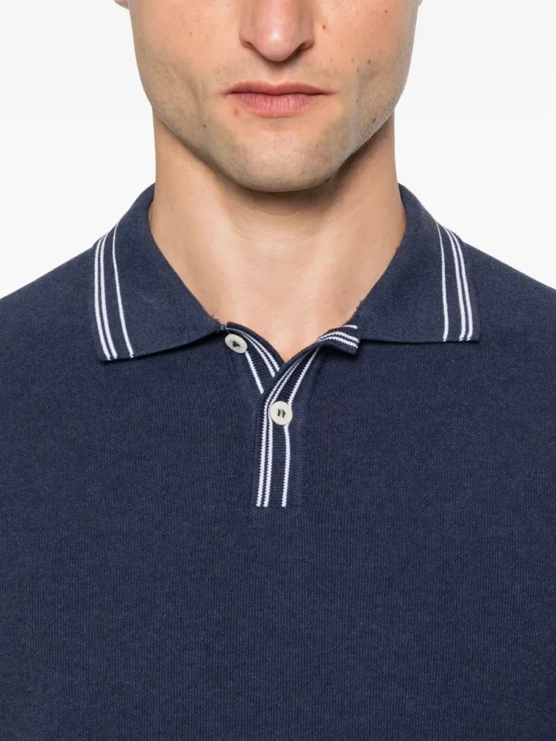 Tricou Gran Sasso Cotton Polo bleumarin, din bumbac, cu guler clasic, inchidere partiala cu nasturi, maneci scurte, dungi in contrast si tiv drept. Potrivit pentru sezonul toamna/iarna. 100% bumbac.