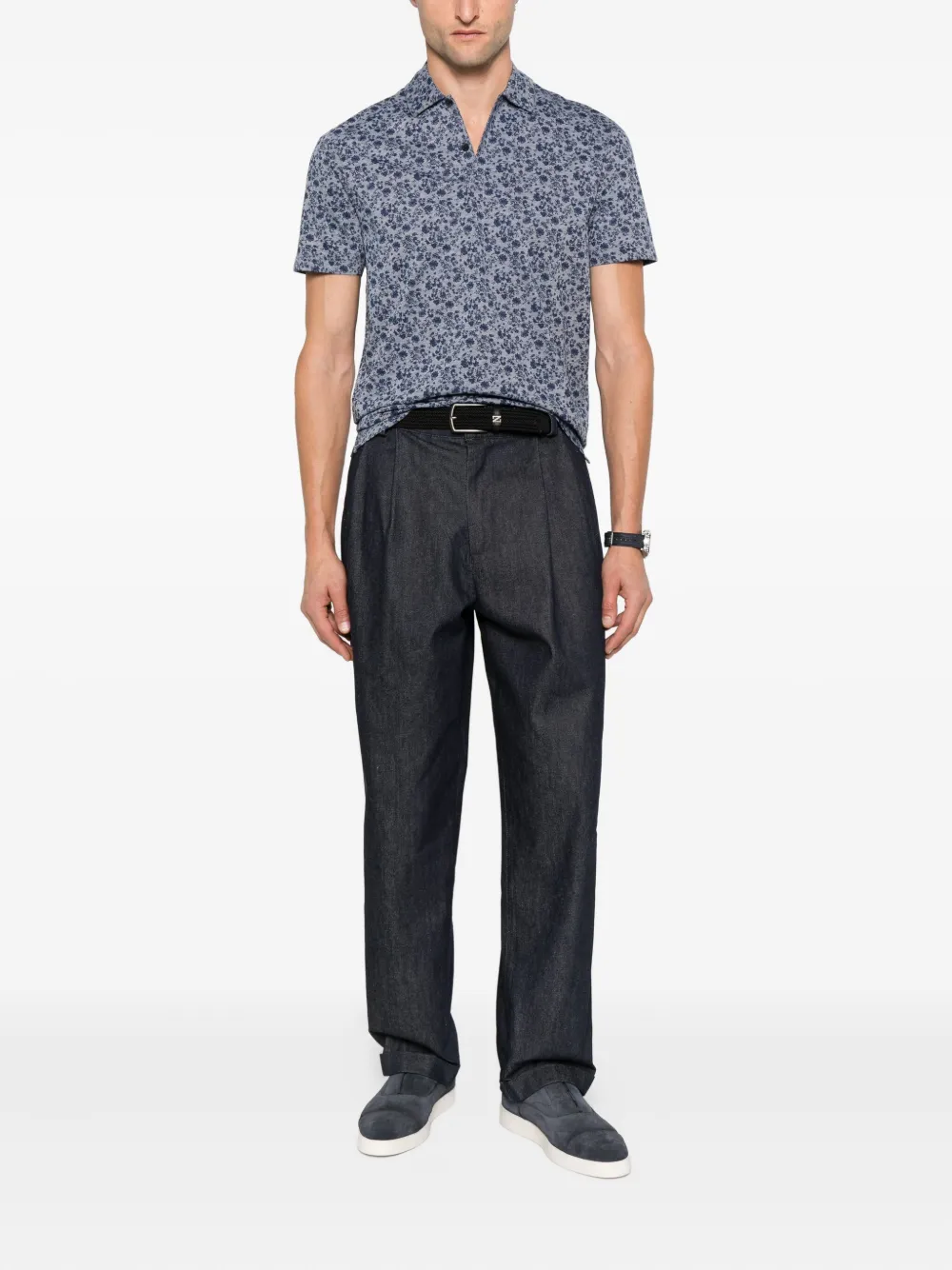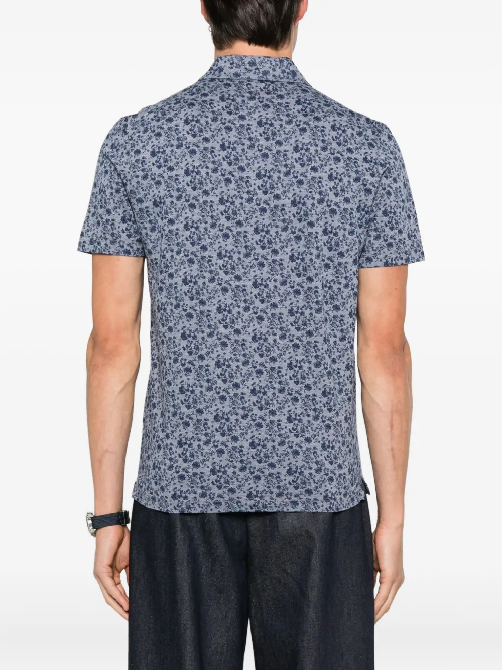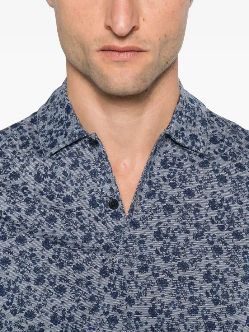 Tricou Gran Sasso Floral-Print albastru, din bumbac, cu guler polo, inchidere partiala cu nasturi, maneci scurte, grafica florala, tesatura poque si tiv drept. Potrivit pentru sezonul toamna/iarna. 100% bumbac.
