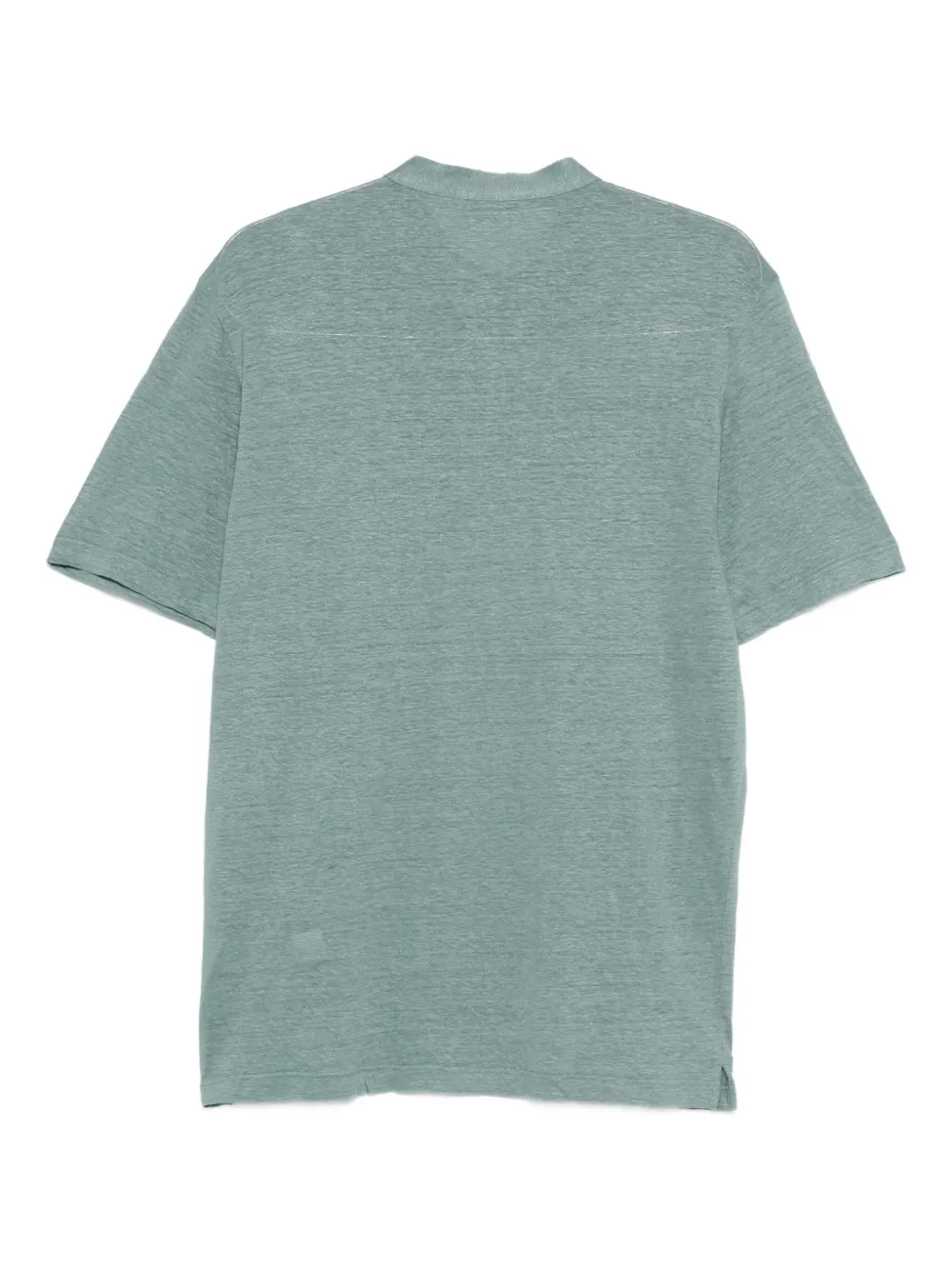 Tricou Gran Sasso henley-neck linen verde, inchidere cu nasturi, 100% in