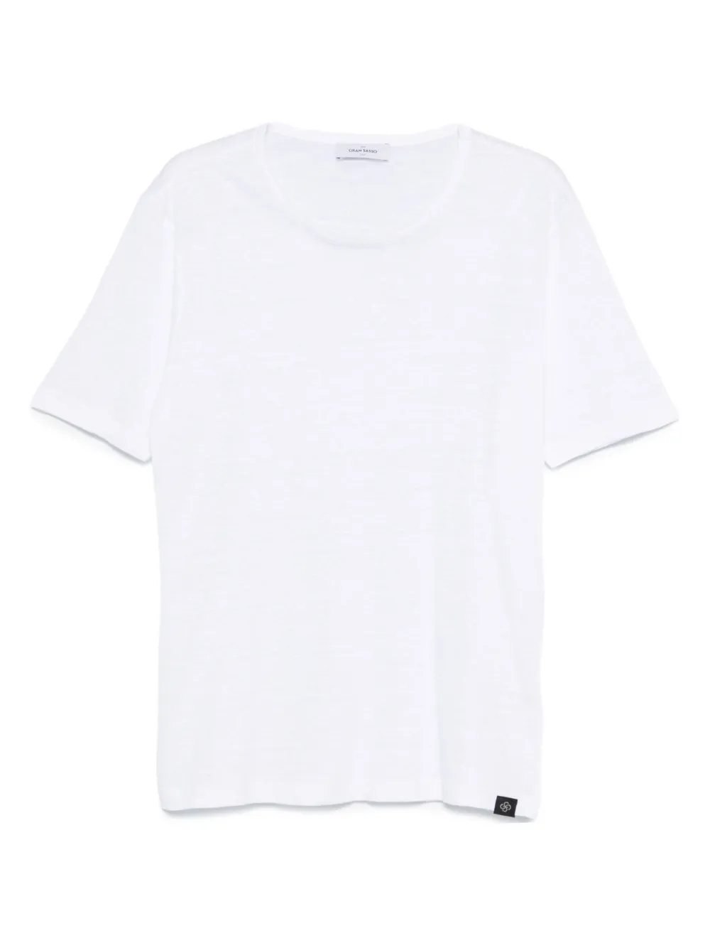 Tricou Gran Sasso linen alb, guler rotund, maneci scurte, tiv drept. Potrivit pentru sezonul primavara/vara.100% in