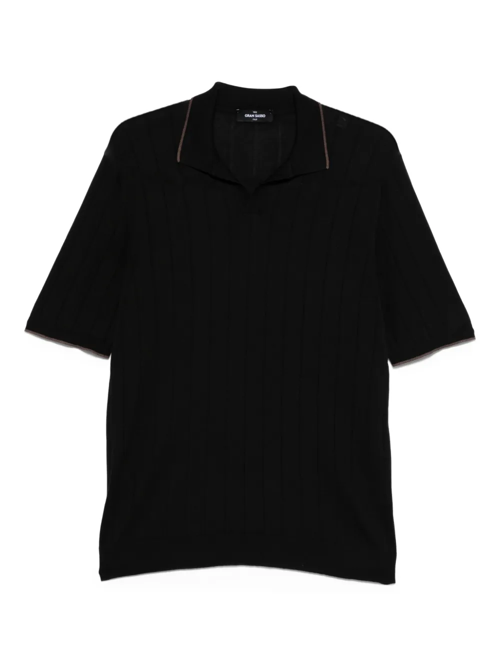 Tricou Gran Sasso ribbed polo negru, guler clasic, maneci scurte si tiv drept. Potrivit pentru sezonul primavara/vara.100% matase