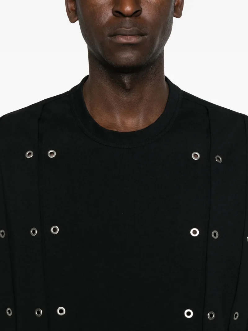 Tricou Jil Sander eyelet-detail negru, guler rotund, maneci scurte, detalii gauri aplicate pe intreaga suprafata.100% bumbac