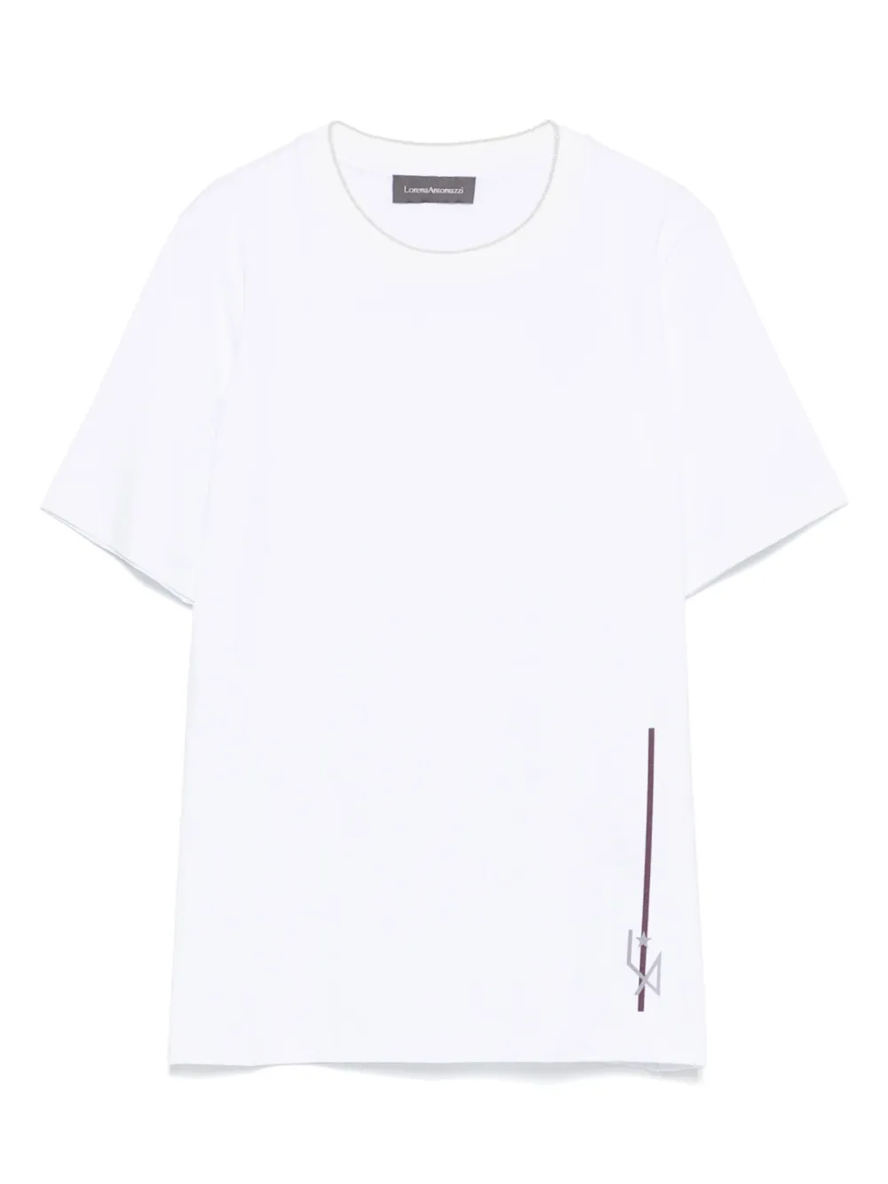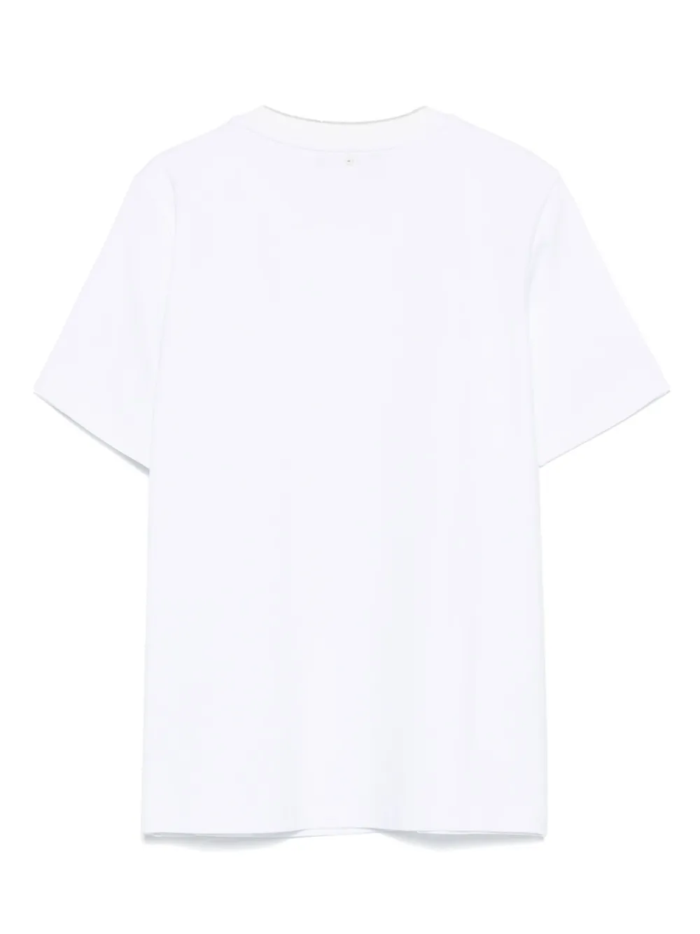 Tricou Lorena Antoniazzi Print-Detail alb, din bumbac, cu guler rotund, maneci medii, grafica Lorena Antoniazzi Star imprimata pe lateral si tiv drept. Potrivit pentru sezonul primavara/vara. 94% bumbac; 14% lycra.
