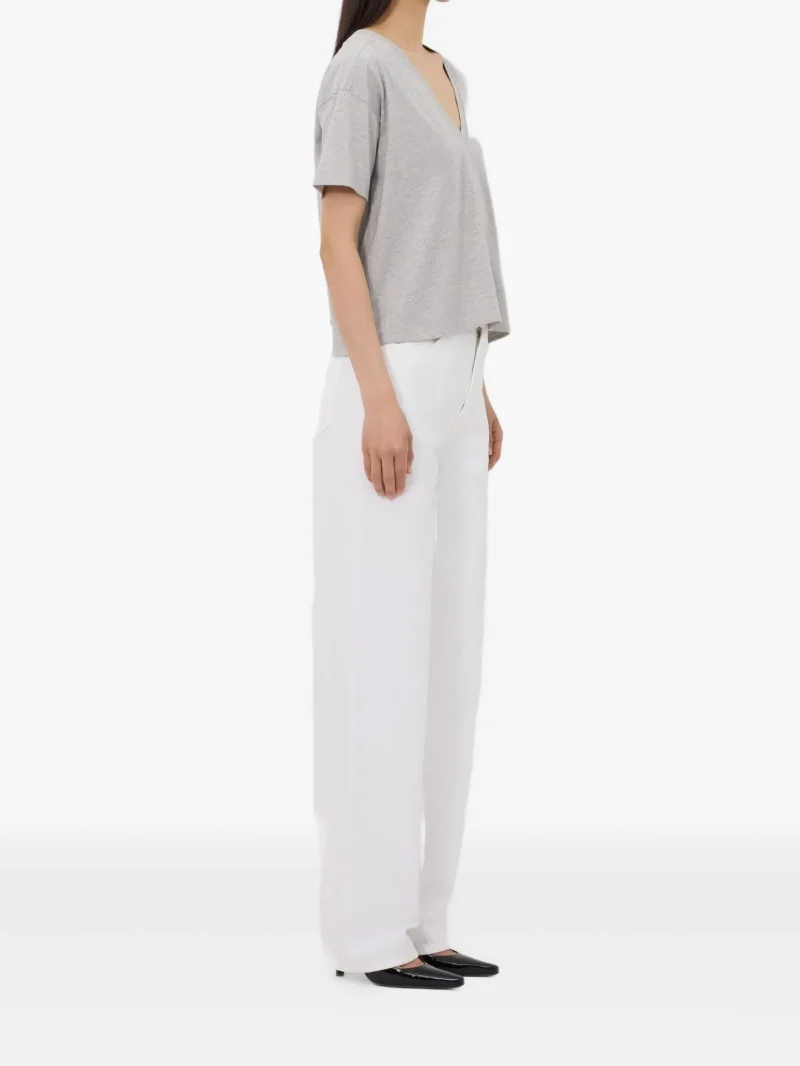 Tricou LouLou De Saison v-neck gri, cu decolteu in V, maneci scurte si tiv drept. 100% bumbac