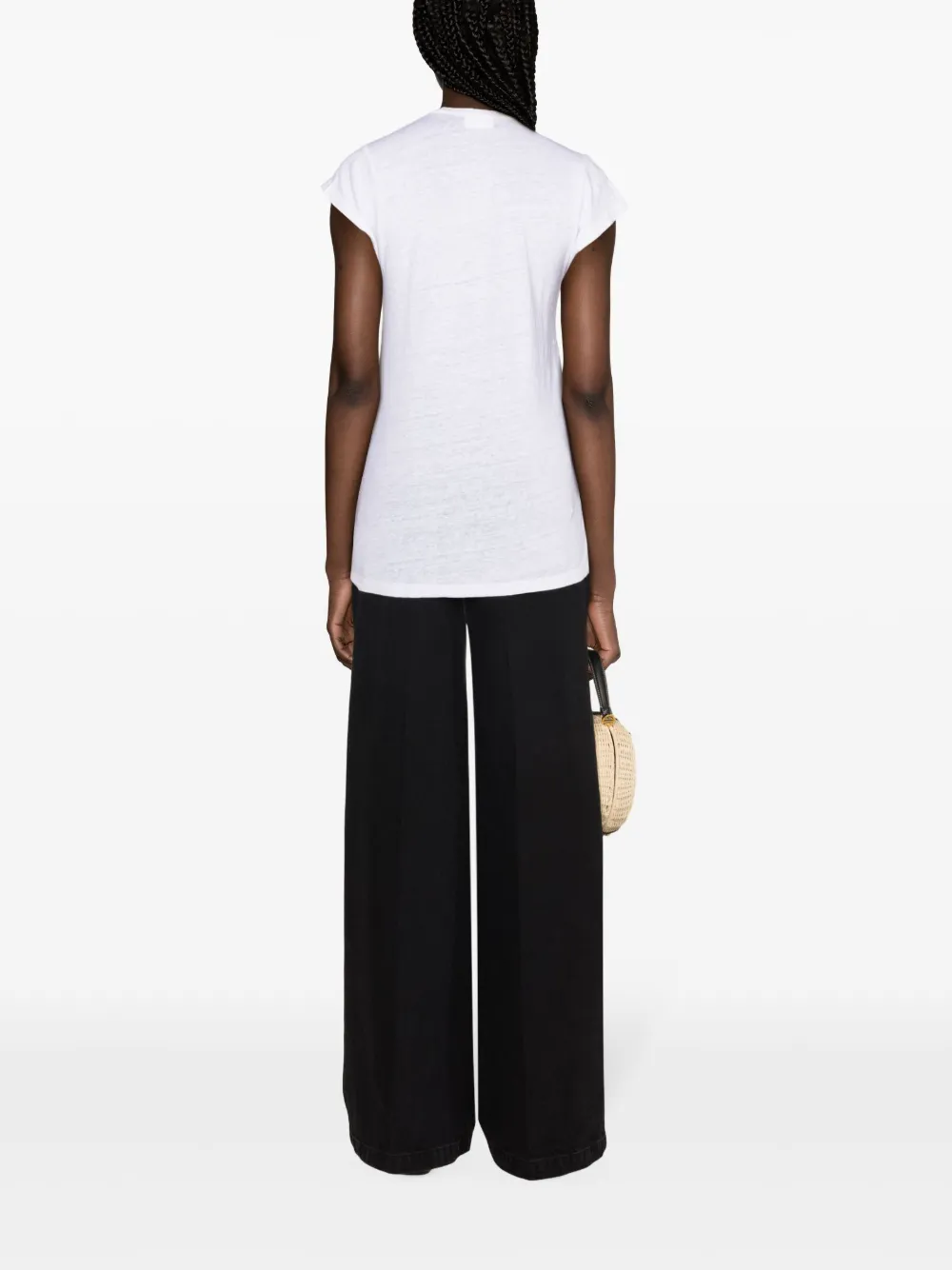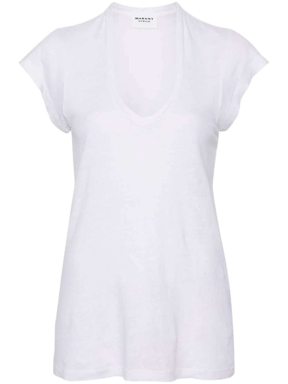 Tricou Marant Etoile Zankou Linen alb, din in, cu decolteu in V, maneci scurte, tesatura semitransparenta si tiv drept. Potrivit pentru sezonul primavara/vara. 100% in.