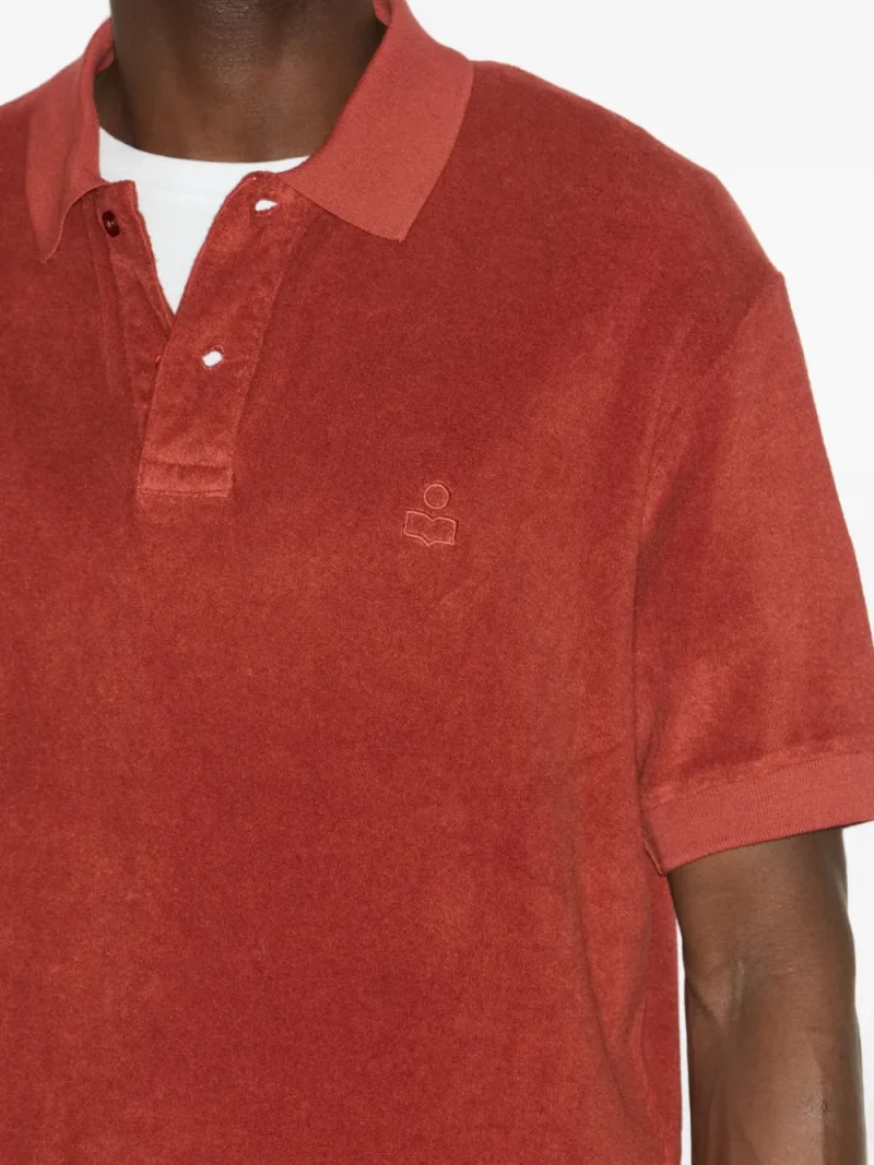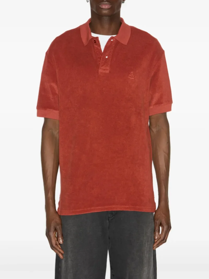 Tricou Marant Vafko Polo portocaliu, din bumbac terry, cu guler clasic, inchidere partiala cu nasturi, maneci scurte, logo Marant brodat la piept si tiv drept. Potrivit pentru sezonul toamna/iarna. 100% bumbac.