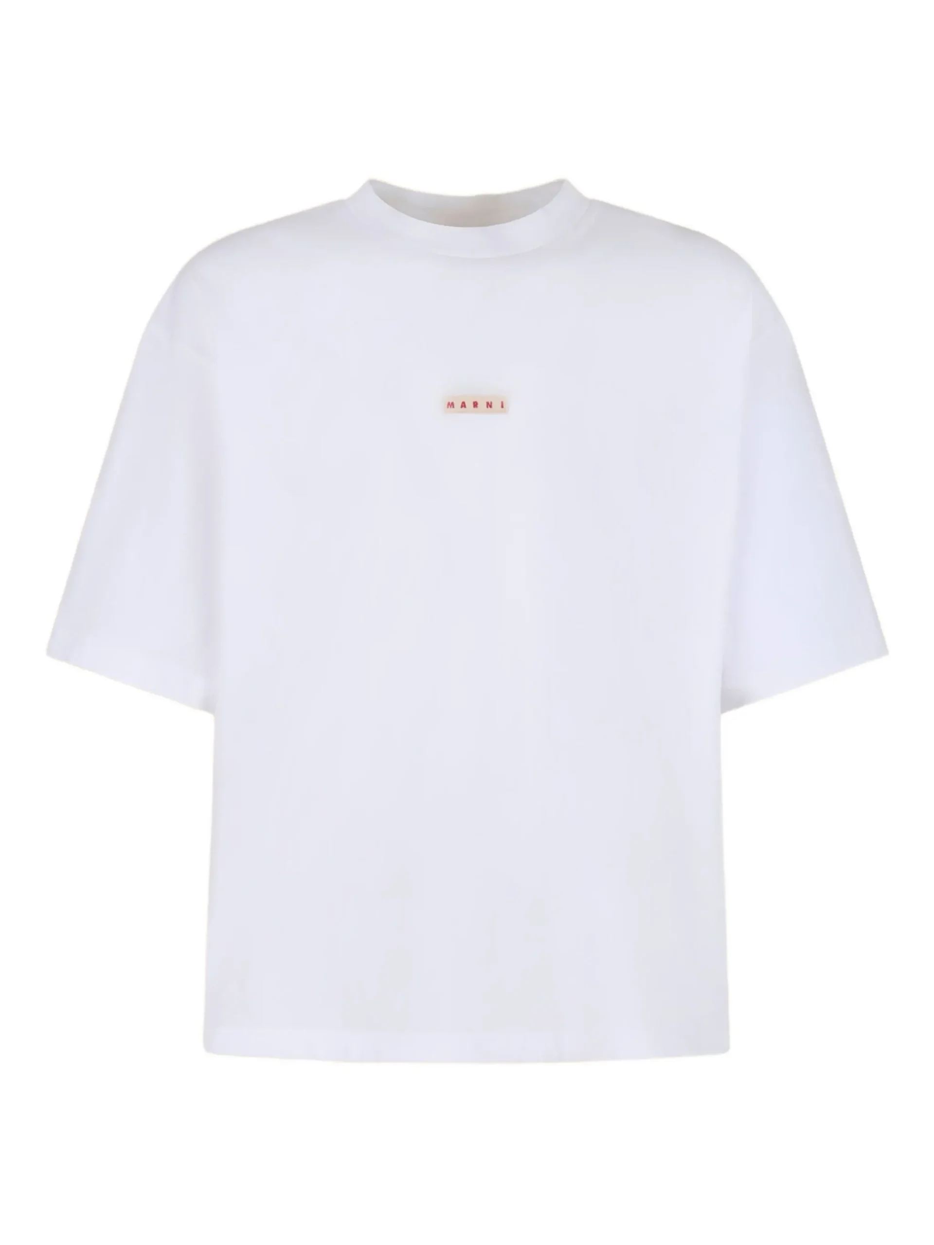 Tricou Marni embroidered-logo alb, guler rotund, maneci scurte, logo pe piept si tiv drept.100% bumbac