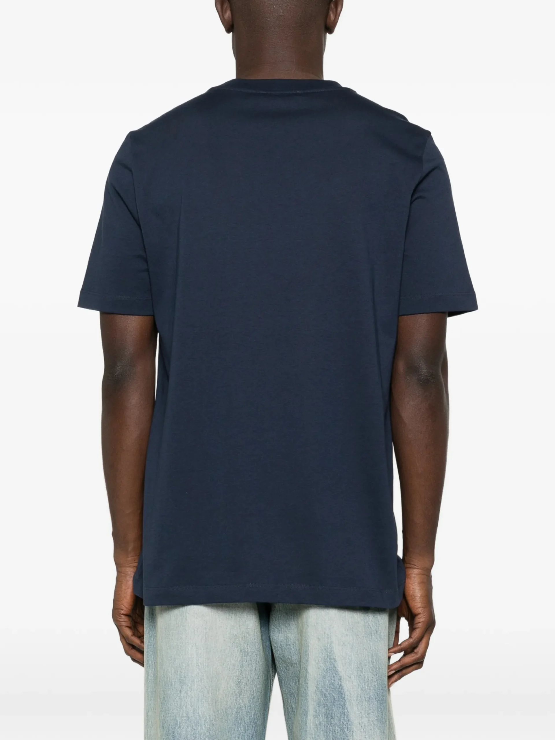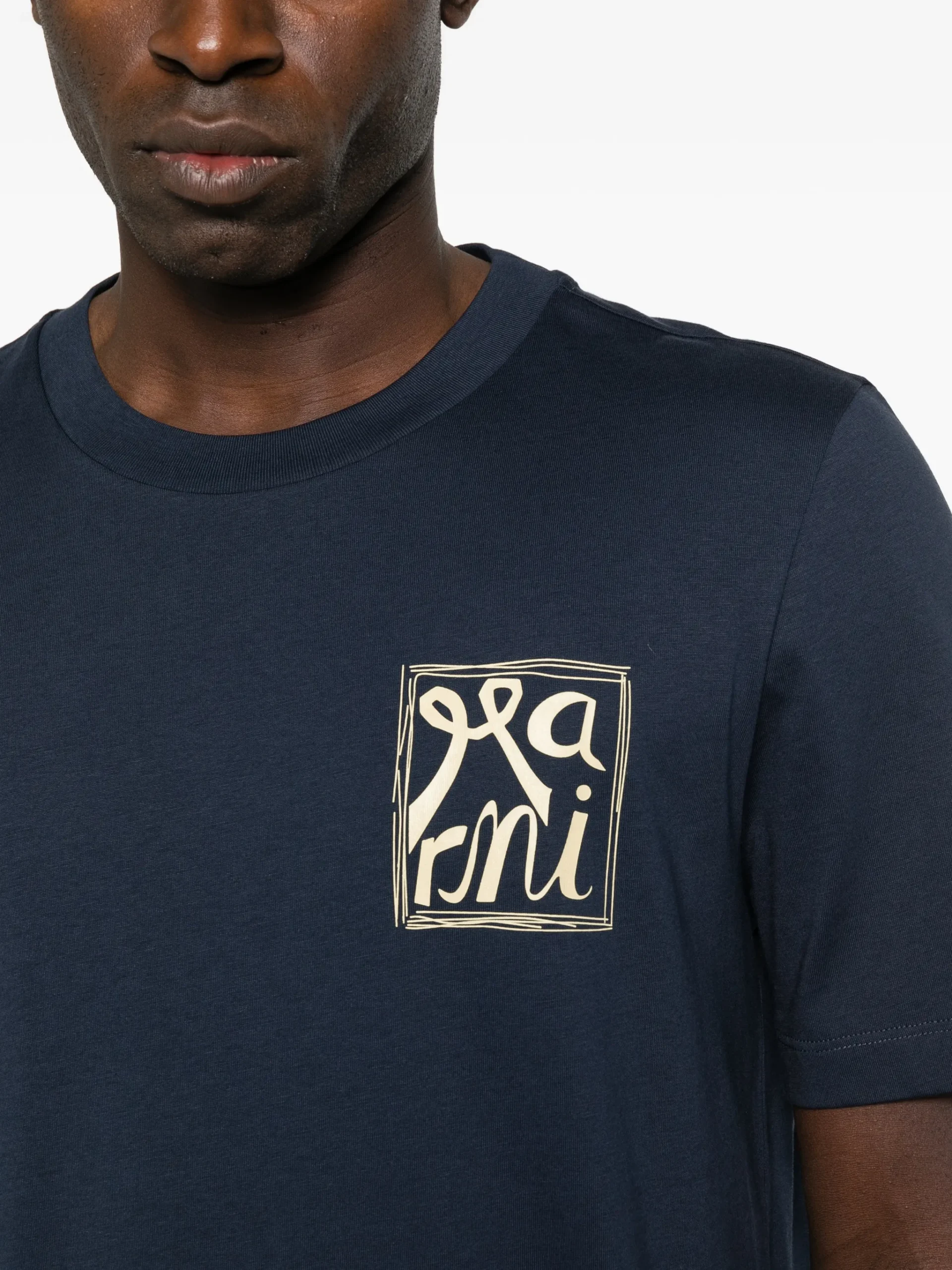 Tricou Marni logo crew-neck albastru, cu guler rotund, maneci scurte si detaliu logo.100% bumbac